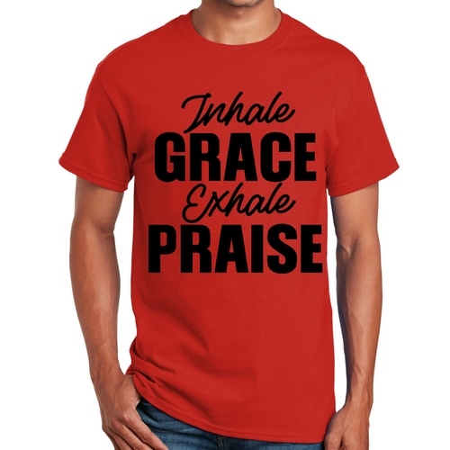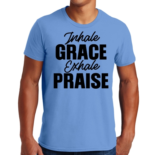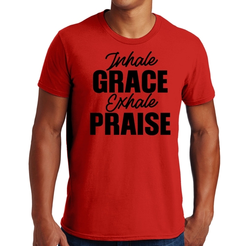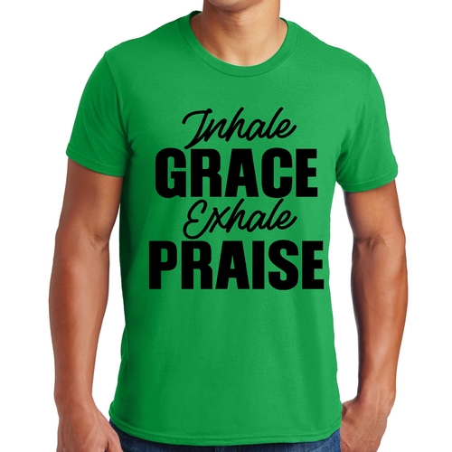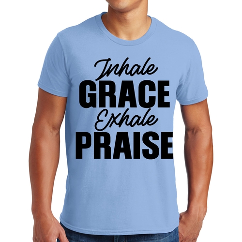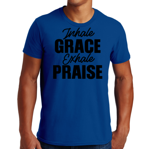 In summary, our Men's Graphic T-shirt featuring 'Inhale Grace Exhale Praise' is a must-have for anyone seeking comfort, style, and durability. With its unisex fit, high-quality cotton material, and inspiring design, this tee is perfect for everyday wear or special occasions. Don't miss out on adding this versatile piece to your collection!