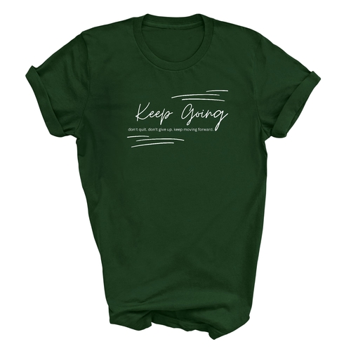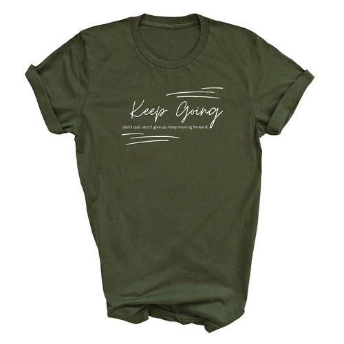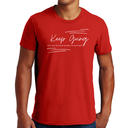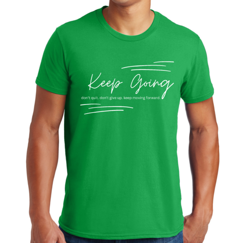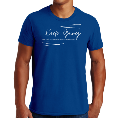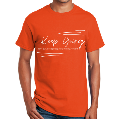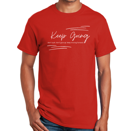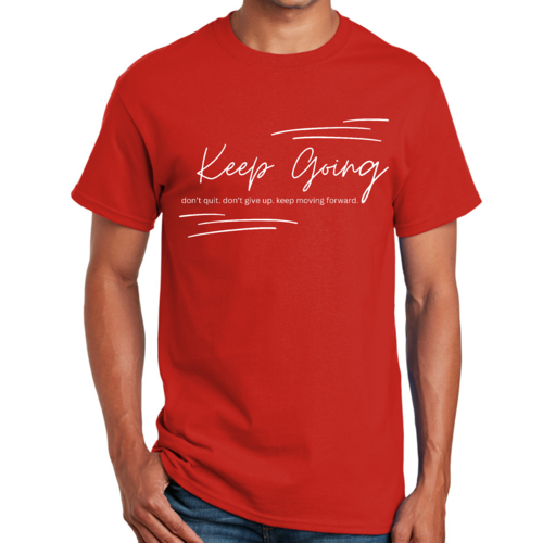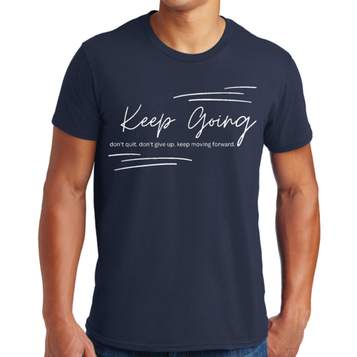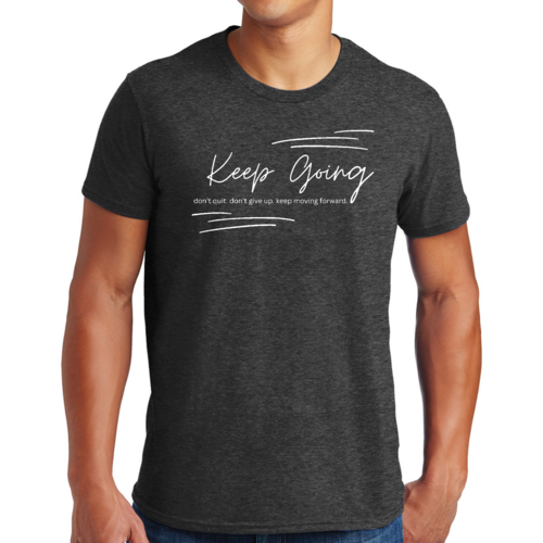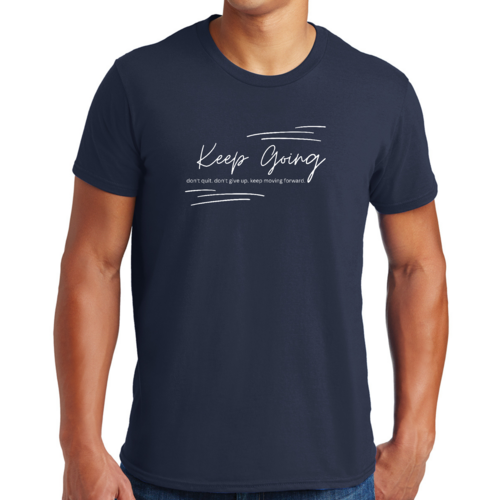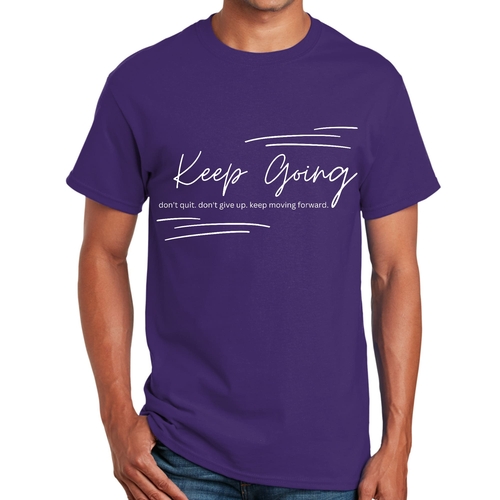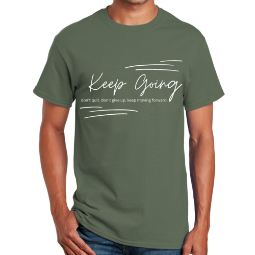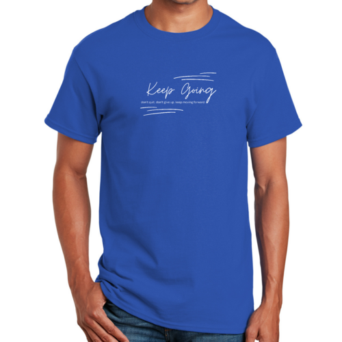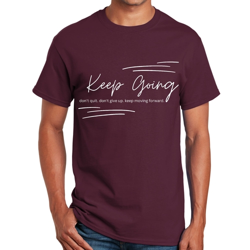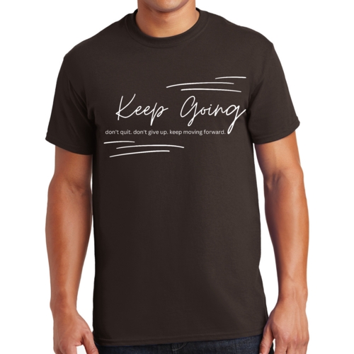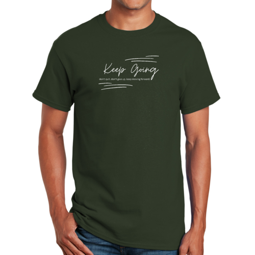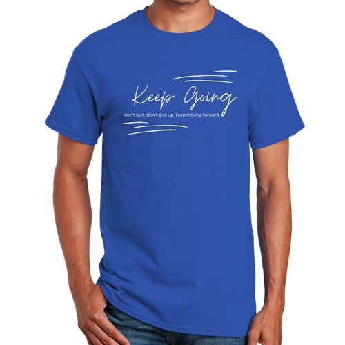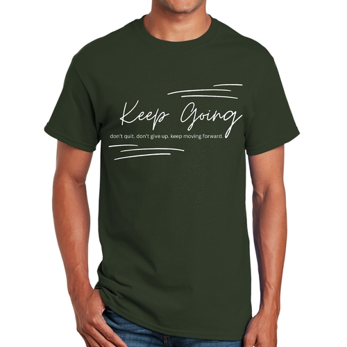 Men's Graphic T-shirt featuring 'Keep Going Don't Give Up' inspirational design, made from soft preshrunk cotton for comfort.