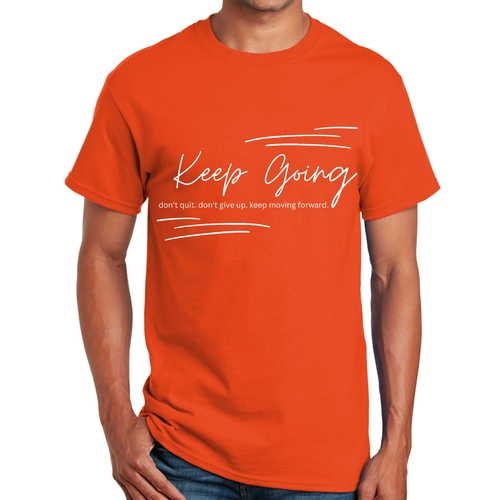 Introducing our Men's Graphic T-shirt, a perfect blend of comfort and motivation. Featuring the inspiring phrase 'Keep Going Don't Give Up', this T-shirt is designed to uplift your spirits while providing a relaxed fit for everyday wear. Made from high-quality preshrunk cotton, this shirt ensures that you not only look good but feel great too.
