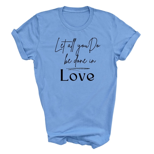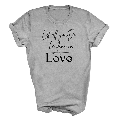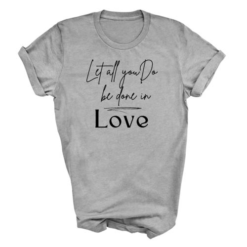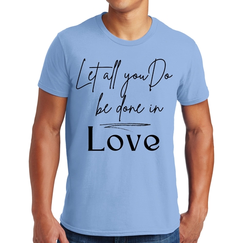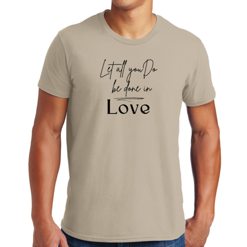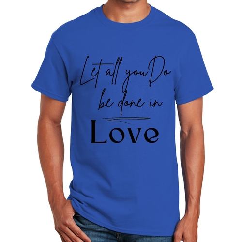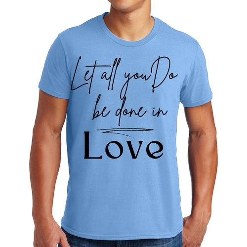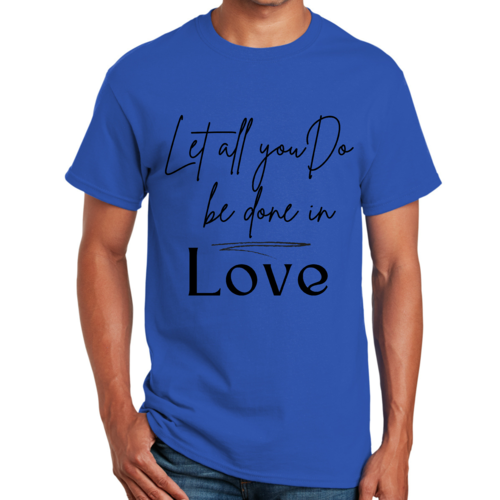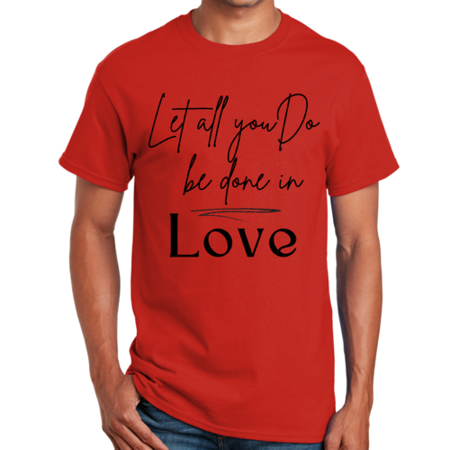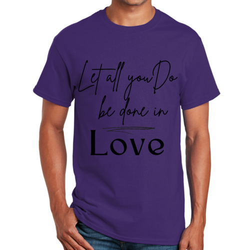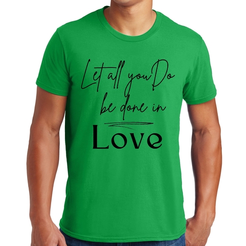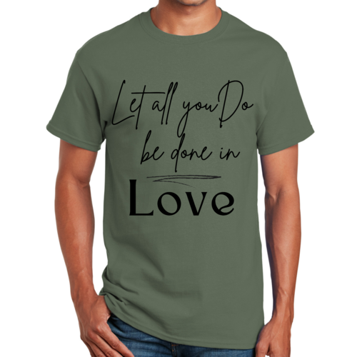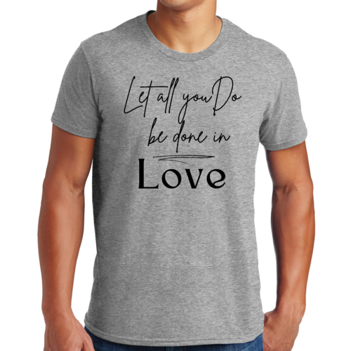 In summary, our Men's Graphic T-shirt featuring the quote 'Let All You Do Be Done in Love' is a must-have for anyone looking to combine comfort, style, and inspiration. With its high-quality materials, thoughtful design, and easy care instructions, this T-shirt is sure to become a staple in your wardrobe.