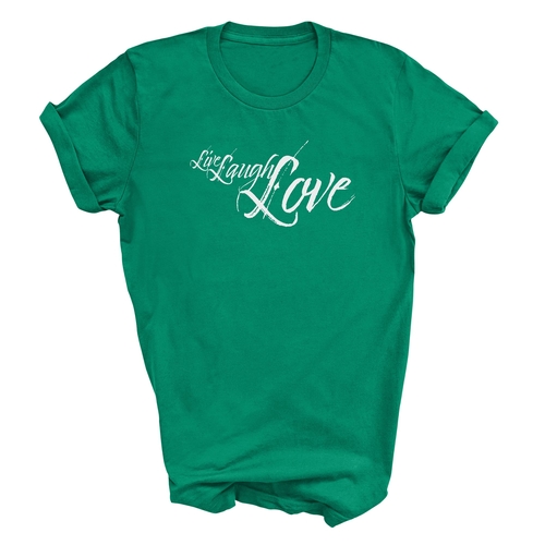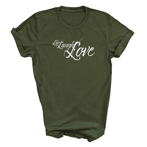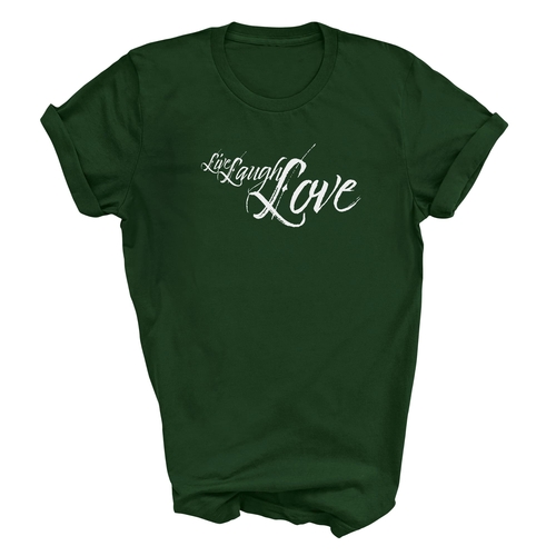The light grey color of this T-shirt serves as a perfect backdrop for the vibrant 'Live Laugh Love' graphic, making it a great choice for those who appreciate positive affirmations. This design not only adds a touch of personality to your outfit but also makes a statement about your outlook on life. Whether you're out with friends, running errands, or just relaxing at home, this T-shirt is sure to draw compliments.