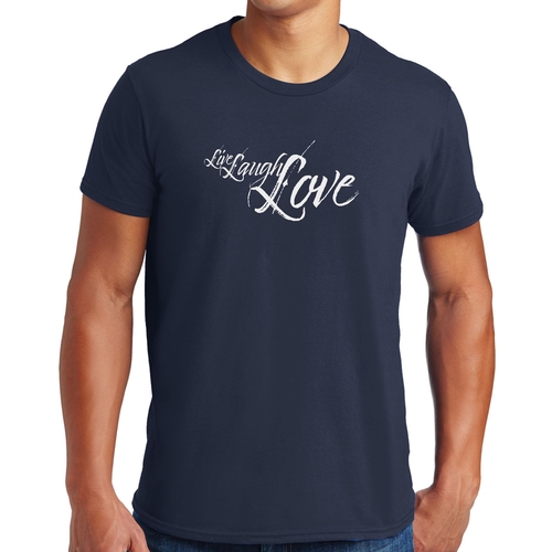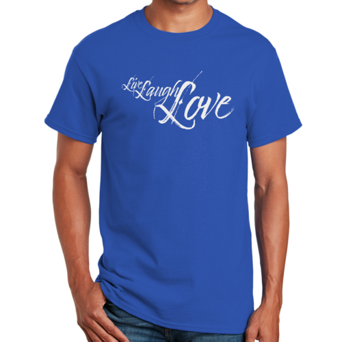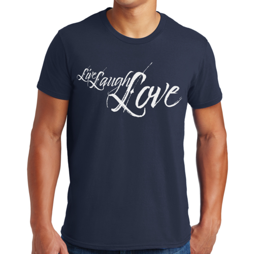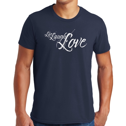 Introducing our Men's Graphic T-shirt featuring the uplifting phrase 'Live Laugh Love' in a stylish light grey color. This T-shirt is designed for both comfort and style, making it a perfect addition to any wardrobe. Crafted from high-quality preshrunk cotton, this shirt ensures that it retains its softness and size even after multiple washes, providing you with a reliable and long-lasting piece of clothing.