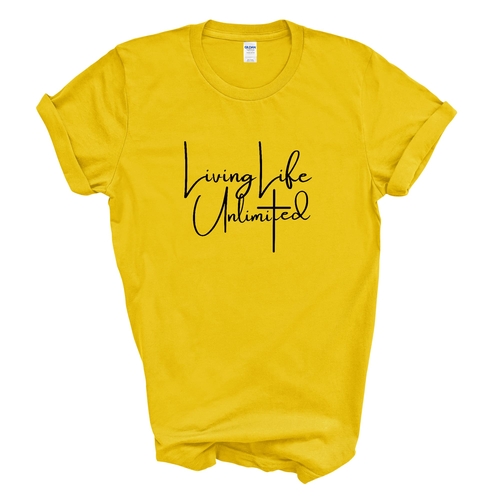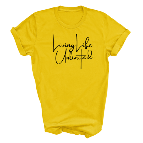Whether you're attending a casual gathering, going for a workout, or simply enjoying a day out, the 'Living Life Unlimited' t-shirt is the perfect companion. Its stylish design and comfortable fit make it suitable for various settings, ensuring you always look and feel your best.