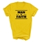 This graphic T-shirt can be easily paired with jeans, shorts, or even layered under a jacket for a more polished look. Its versatility makes it a staple in any wardrobe. Dress it up or down, and make it your own by accessorizing with your favorite jewelry or hats. The Man of Faith design adds a unique touch that sets you apart from the crowd.
