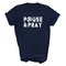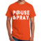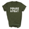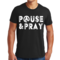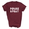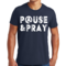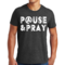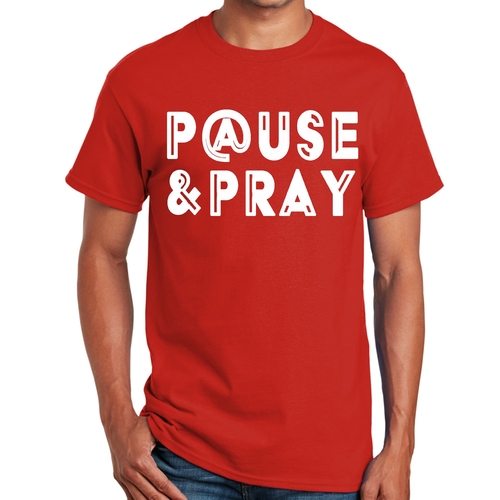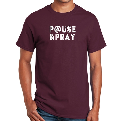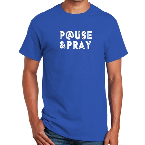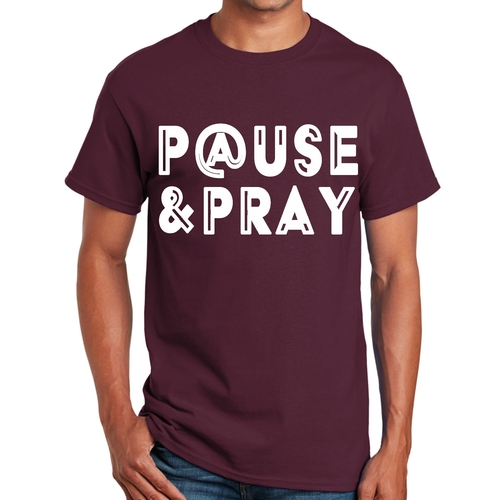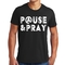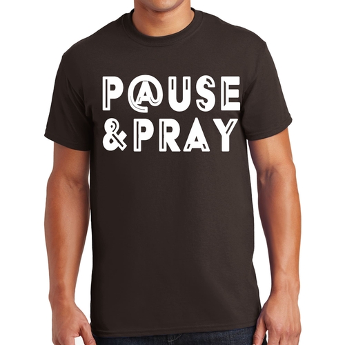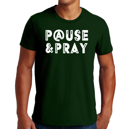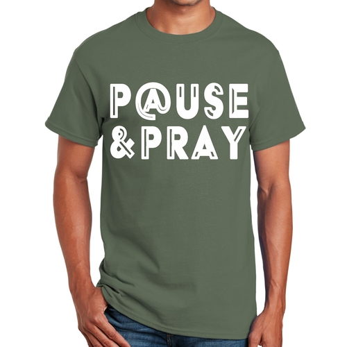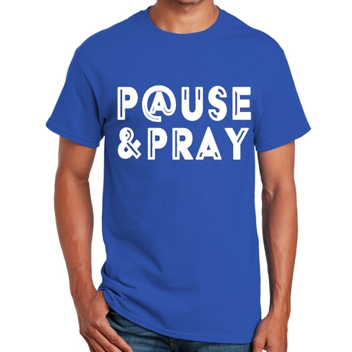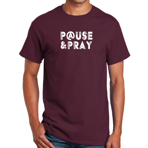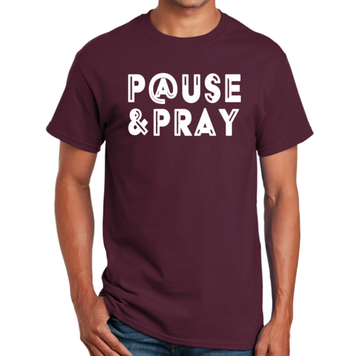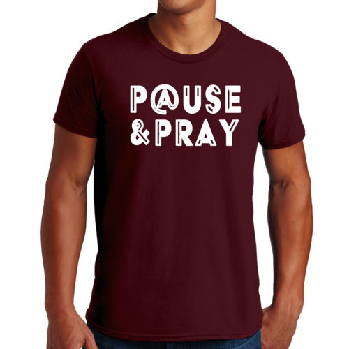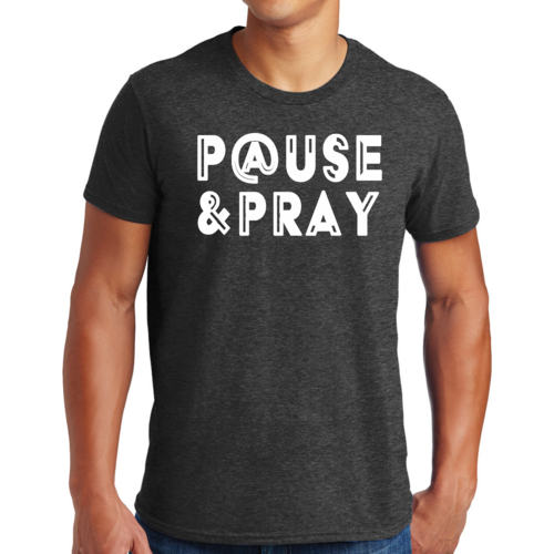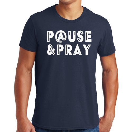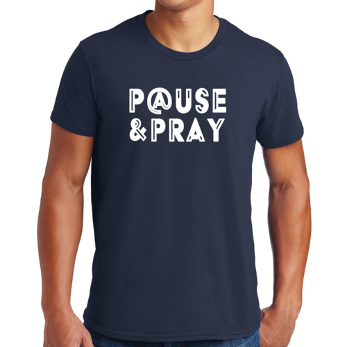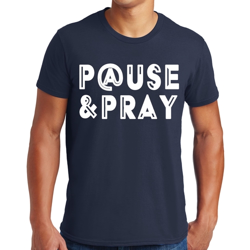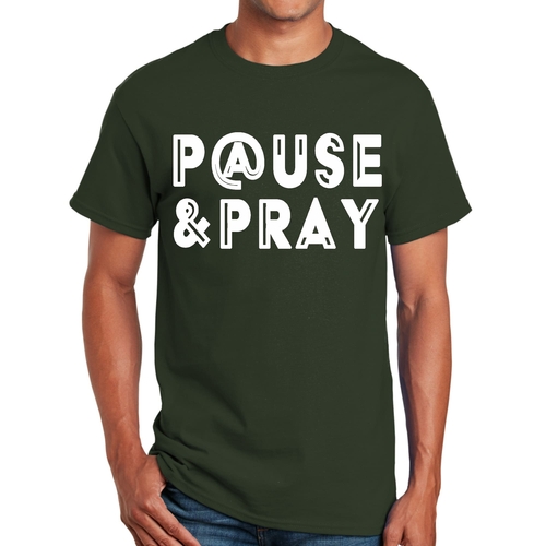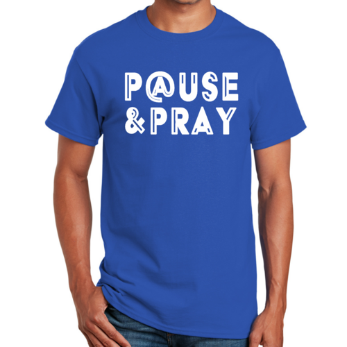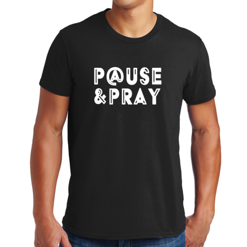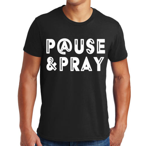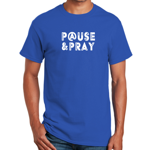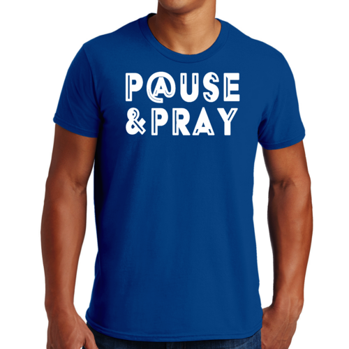 The 'Pause and Pray' graphic adds a unique touch to this classic t-shirt. It serves as a reminder to take a moment for yourself and reflect, making it not just a piece of clothing, but a statement of your values. The design is eye-catching yet subtle enough to pair with various outfits, from jeans to shorts, making it a versatile addition to your wardrobe.
