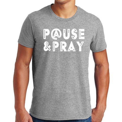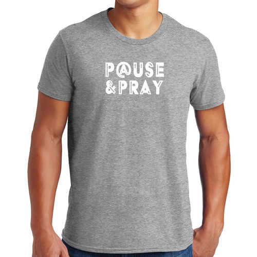 Looking for a thoughtful gift? The Men's Graphic T-shirt 'Pause and Pray' makes an excellent choice for birthdays, holidays, or just because. Its universal appeal and meaningful message resonate with many, making it a gift that is sure to be appreciated. Pair it with a nice card, and you have a perfect present!