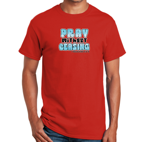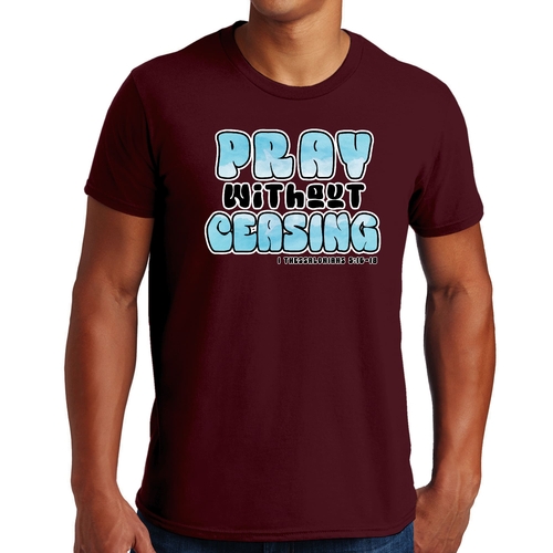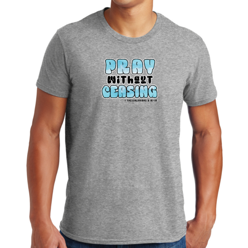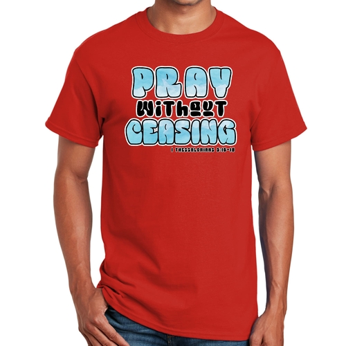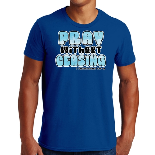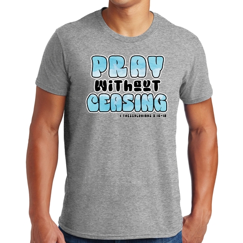 Introducing our Men's Graphic T-shirt featuring the inspirational phrase 'Pray Without Ceasing'. This short sleeve tee is designed for those who appreciate comfort and style while expressing their faith. Made from high-quality cotton, this t-shirt is not only soft against the skin but also durable enough to withstand everyday wear. Whether you're heading to a casual outing, running errands, or simply lounging at home, this t-shirt is a versatile addition to your wardrobe.