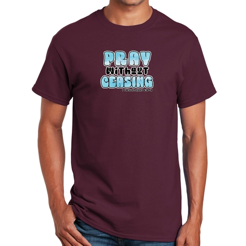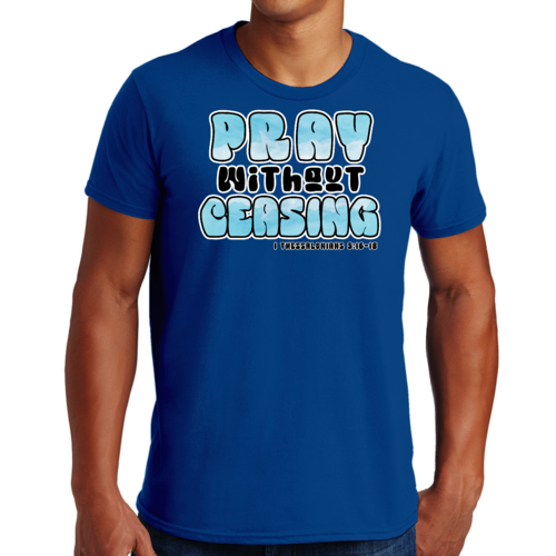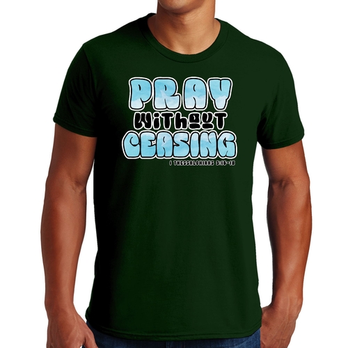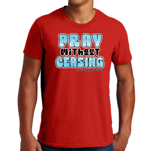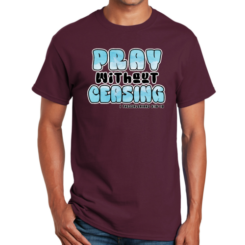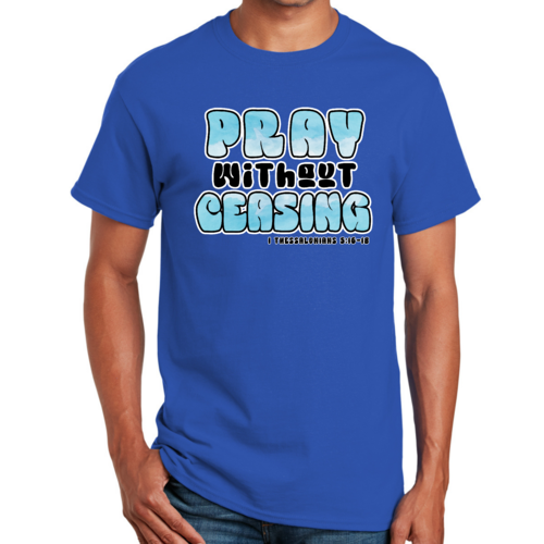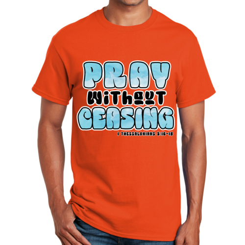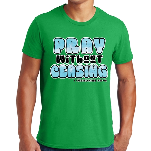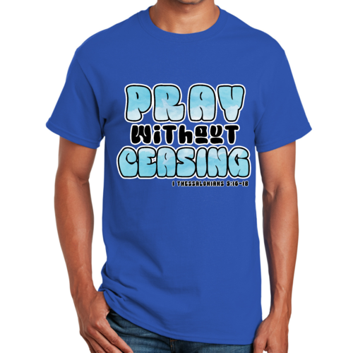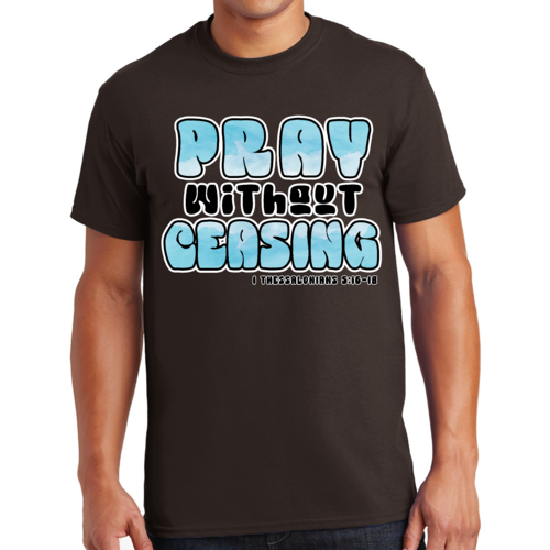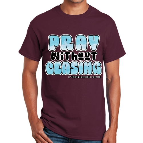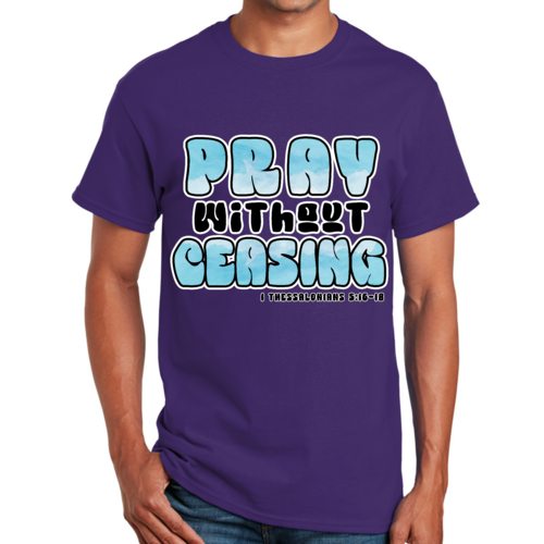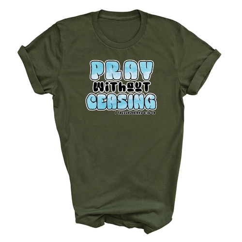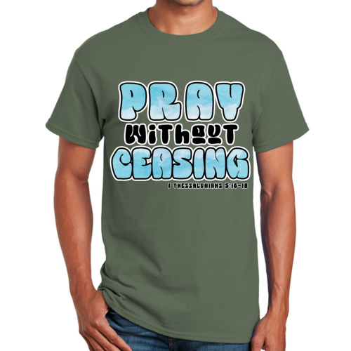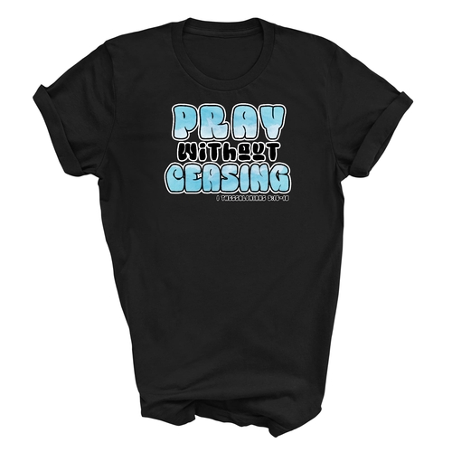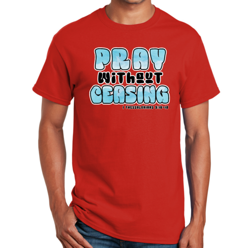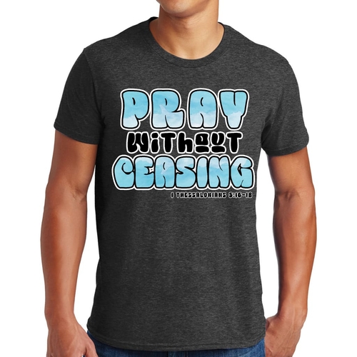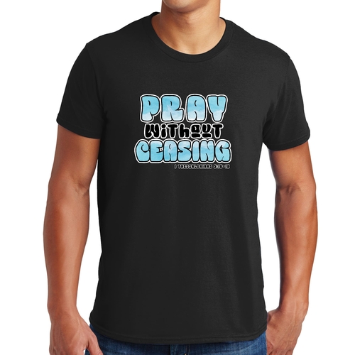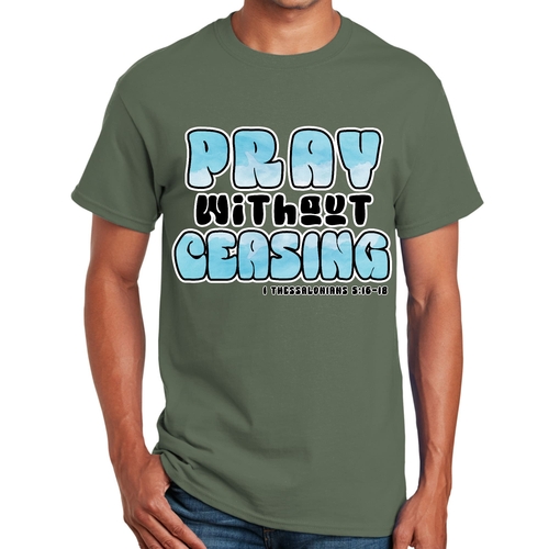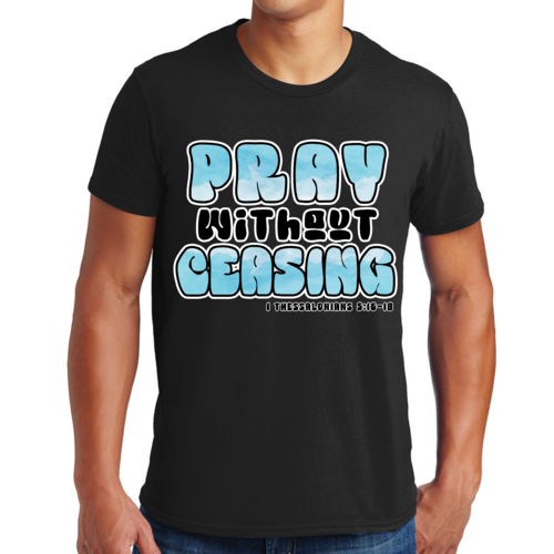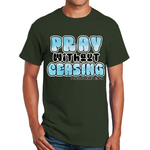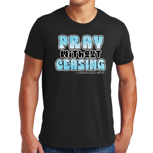 The 'Pray Without Ceasing' graphic is not just a design; it's a statement of faith and encouragement. This inspirational illustration serves as a reminder to stay positive and keep faith in challenging times. It makes for a thoughtful gift for friends, family, or anyone who appreciates motivational messages. Wear it proudly to share your beliefs and inspire others around you.
