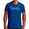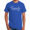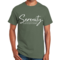 The Mens Graphic T-shirt Serenity is designed with durability in mind. It features double-needle topstitch detailing, which enhances the shirt's longevity and gives it a polished look. The crewneck design and rib collar provide a classic touch, while the tubular body ensures a comfortable fit without side seams.