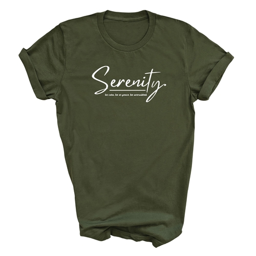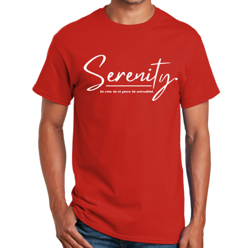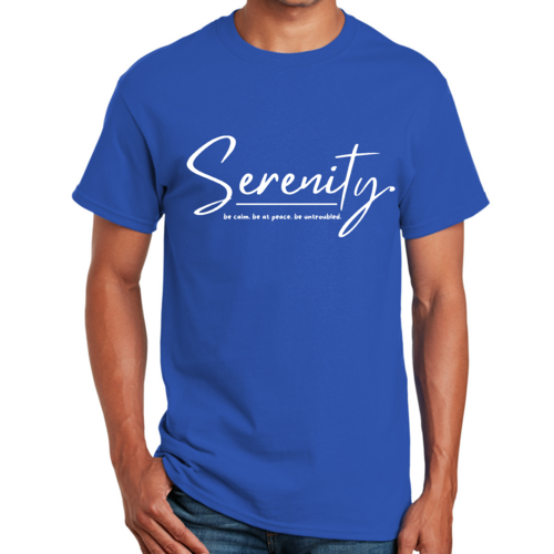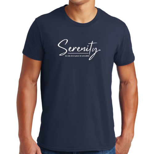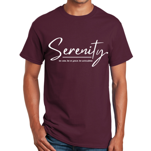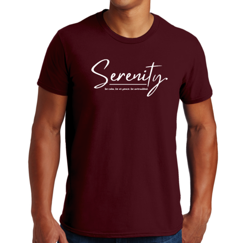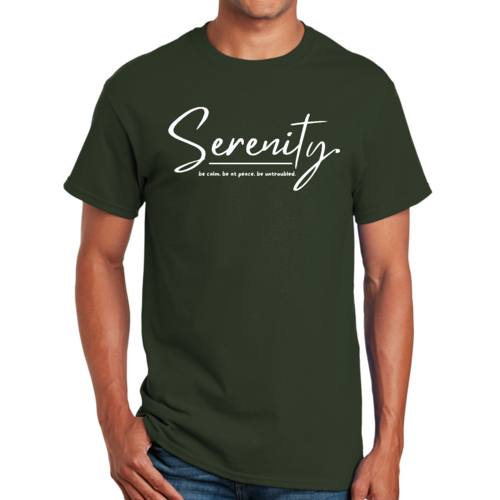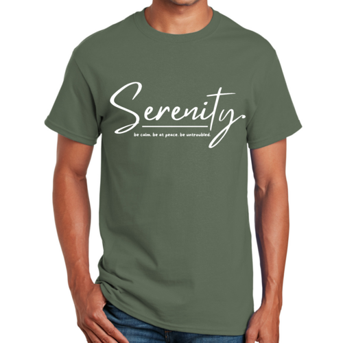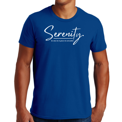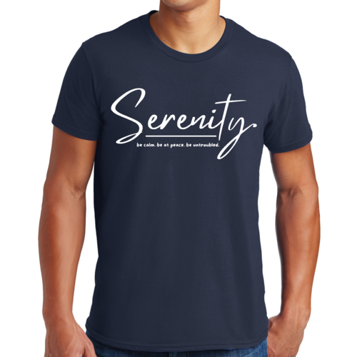 The Mens Graphic T-shirt Serenity is not just a piece of clothing; it's a statement. Pair it with jeans for a casual day out, or wear it with shorts for a relaxed weekend look. Its inspirational message makes it a great conversation starter, and it can easily be layered under a jacket or hoodie for cooler weather.