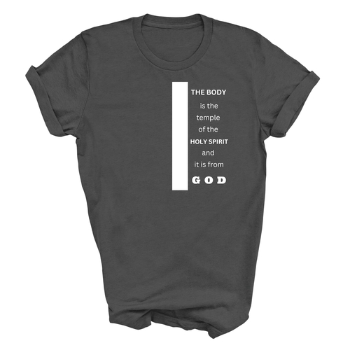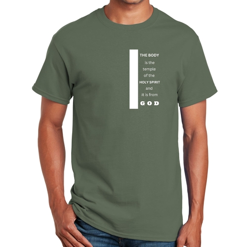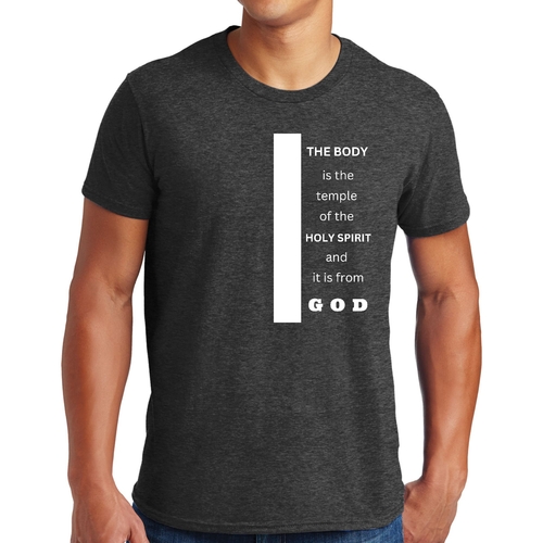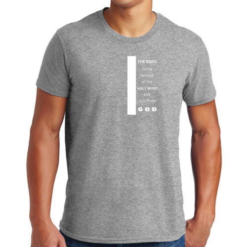 Introducing our Men's Graphic T-shirt featuring the inspiring phrase, 'The Body is the Temple of the Holy Spirit'. This T-shirt is not just a piece of clothing; it’s a statement of faith and a reminder of the importance of caring for our bodies as sacred vessels. Made from high-quality, preshrunk cotton, this shirt is designed to provide maximum comfort and durability, ensuring it retains its softness and shape even after multiple washes.