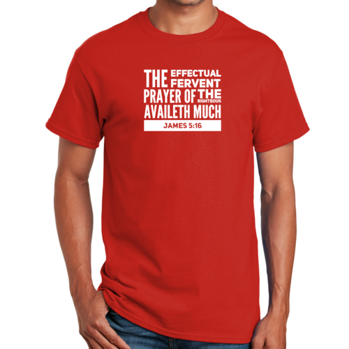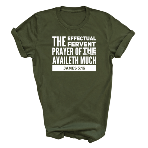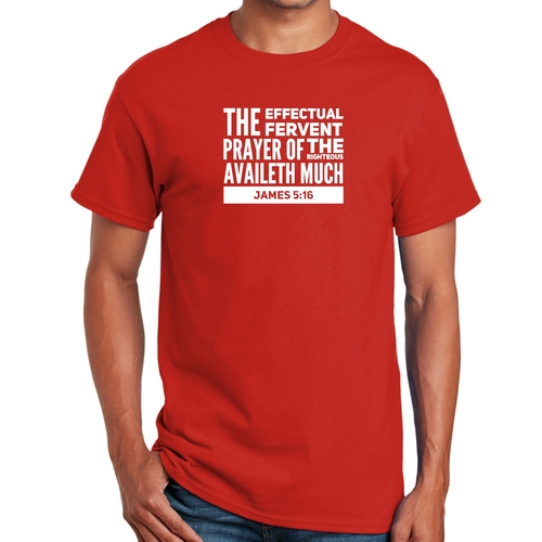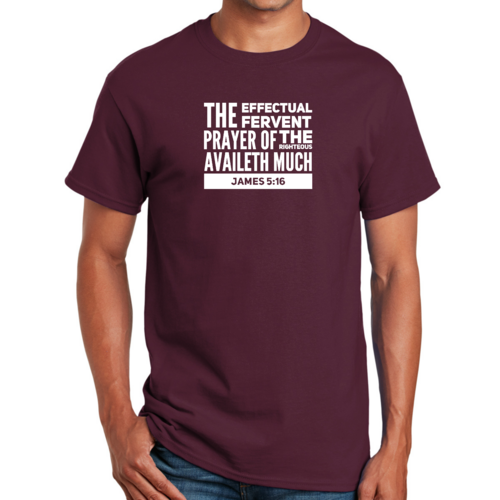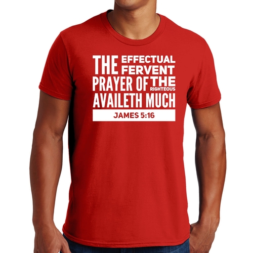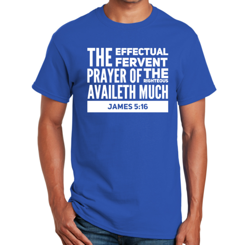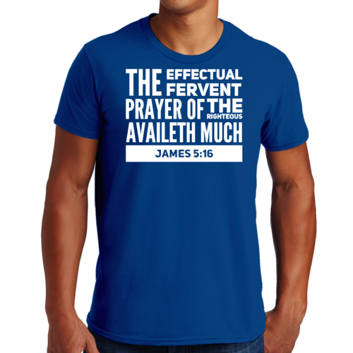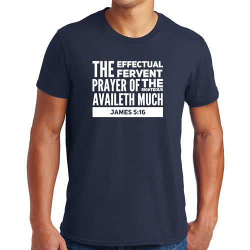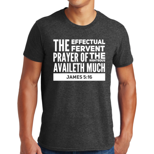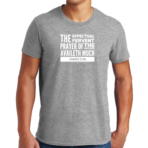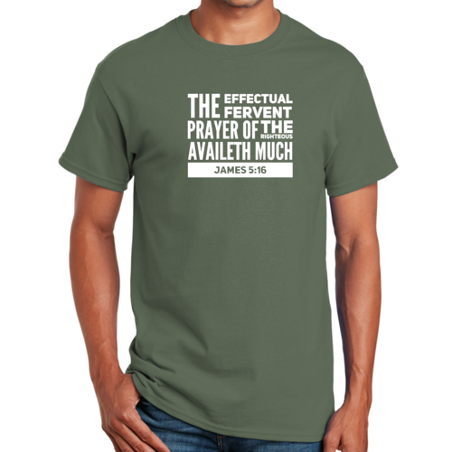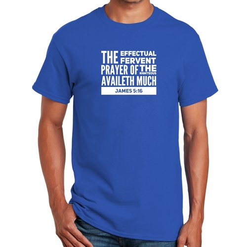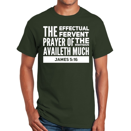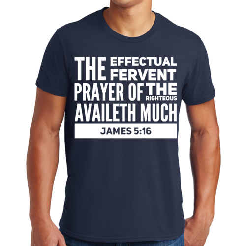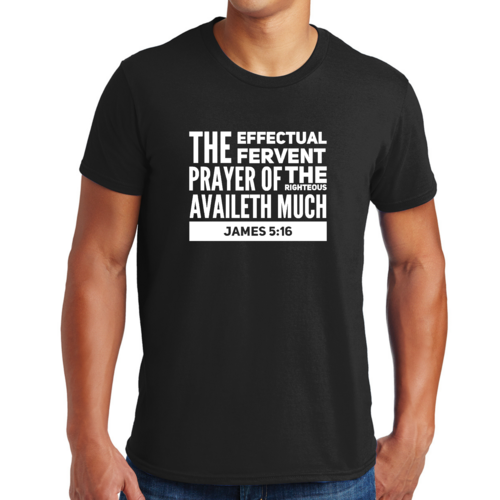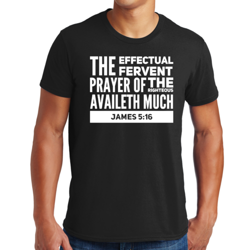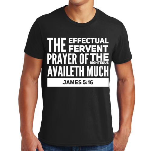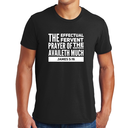 Introducing the Mens Graphic T-shirt, featuring the inspiring phrase 'The Effectual Fervent Prayer' from James 5:16. This stylish and comfortable T-shirt is perfect for anyone looking to express their faith while enjoying a casual, relaxed fit. Made from high-quality preshrunk cotton, this T-shirt retains its softness and size even after multiple washes, ensuring that it remains a staple in your wardrobe for years to come.