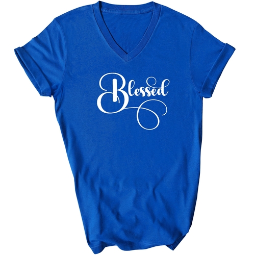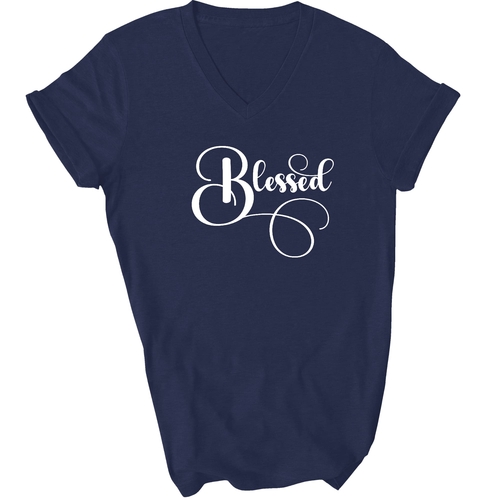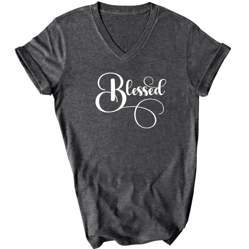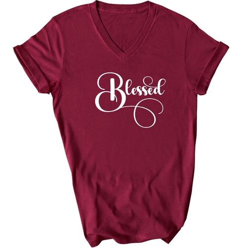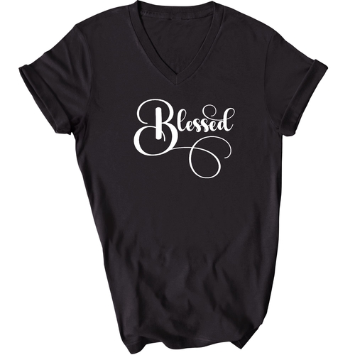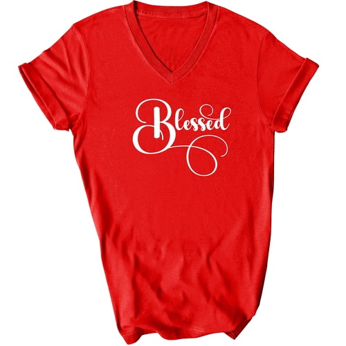 To keep your Blessed Graphic V-neck T-shirt looking its best, follow these simple care instructions. Wash it in cool water to preserve the fabric's integrity, and either hang dry or tumble dry on low heat. Avoid dry cleaning to maintain the quality of the preshrunk cotton. Please note that the content of the fabric may vary for some colors, but rest assured that the quality remains top-notch.
