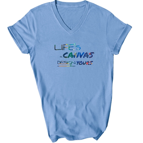 In summary, the Men's Graphic V-neck T-shirt with the 'Life's a Canvas Design Yours' print is a must-have for anyone looking to combine comfort, style, and motivation. With its soft preshrunk cotton fabric, classic fit, and durable construction, this T-shirt is designed to be a staple in your wardrobe for years to come.