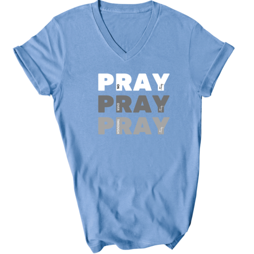 Dropship Mens Graphic V-neck T-shirt - Pray on it Over it Through