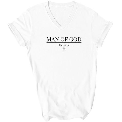 Introducing the Men's Graphic V-neck T-shirt, a perfect blend of comfort and style for those who wish to express their faith. This T-shirt features a unique 'Man of God' illustration, making it an ideal choice for Christian gatherings, church events, or casual outings. Made from soft, preshrunk cotton, this shirt ensures that you not only look good but feel great too.