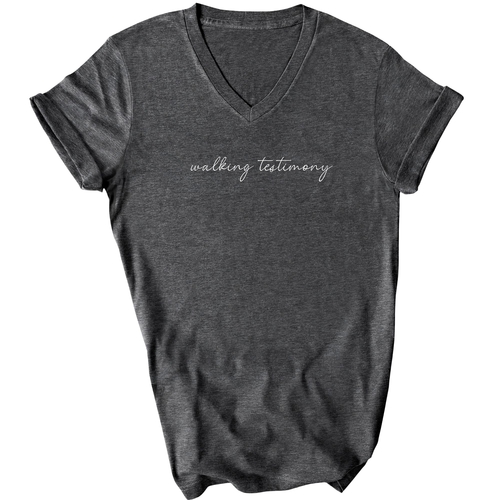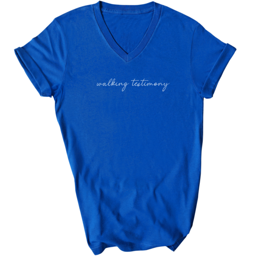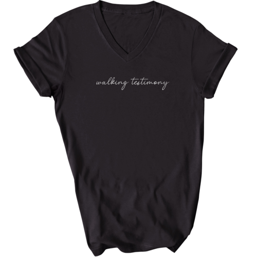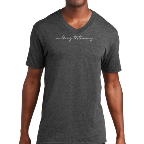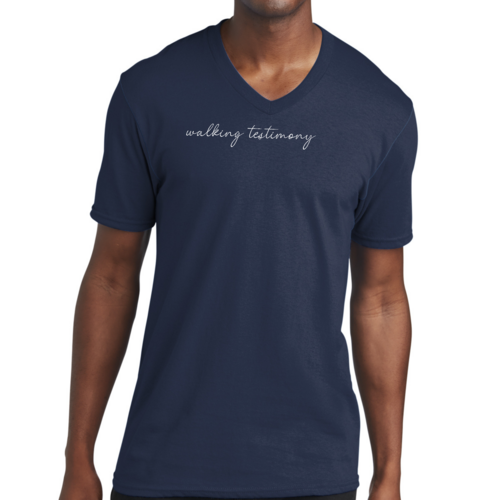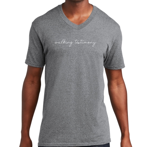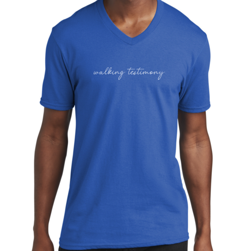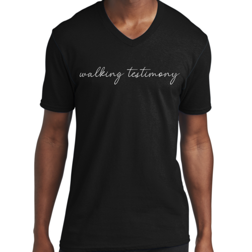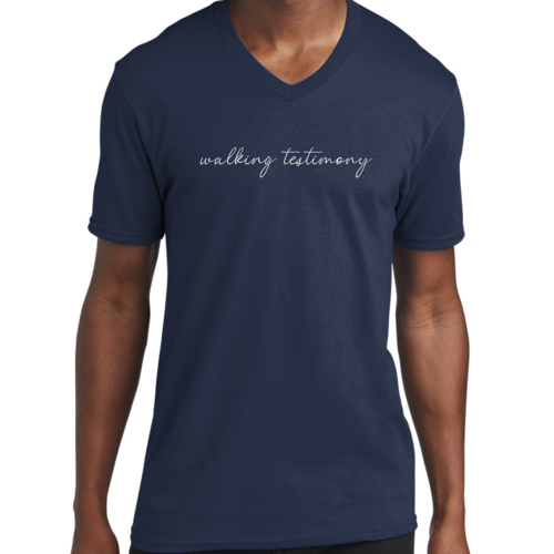 Introducing the Say It Soul, Walking Testimony Men's Graphic V-neck T-shirt, a perfect blend of comfort and inspiration for those who wear their faith proudly. This t-shirt is designed for men who appreciate both style and a meaningful message. Made from high-quality preshrunk cotton, this shirt ensures that you not only look good but feel great too.