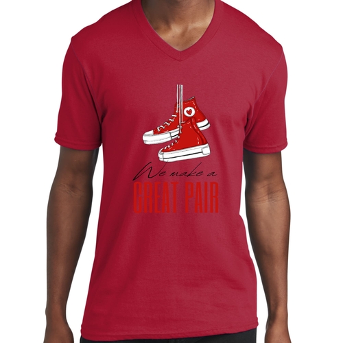 Introducing the Men's Graphic V-neck T-shirt, Say It Soul, We Make A Great Pair, a perfect blend of style and comfort designed for the imaginative individual. This vibrant red t-shirt is not just a piece of clothing; it’s a canvas for self-expression, allowing you to showcase your unique personality through fashion. Crafted with high-quality materials, this tee is tailored for those who appreciate artistic designs and want to make a bold statement in their everyday wear.