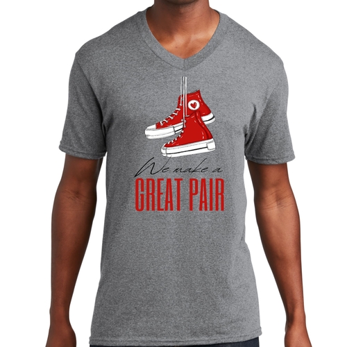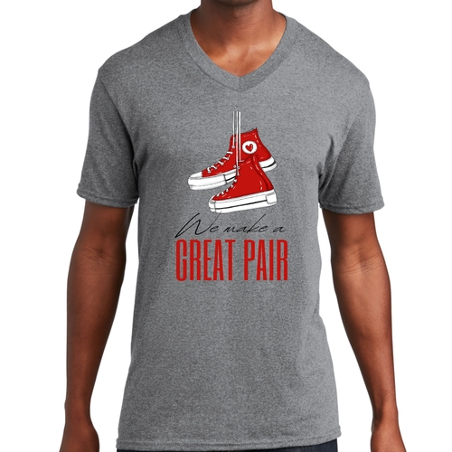 The standout feature of this graphic V-neck t-shirt is its eye-catching print that captures the essence of contemporary fashion. The phrase 'We Make A Great Pair' is not just a catchy slogan; it reflects a lifestyle of creativity and individuality. Whether you're heading out for a casual day with friends or attending a creative event, this t-shirt will ensure you stand out from the crowd.
