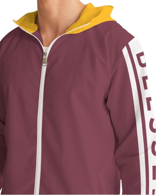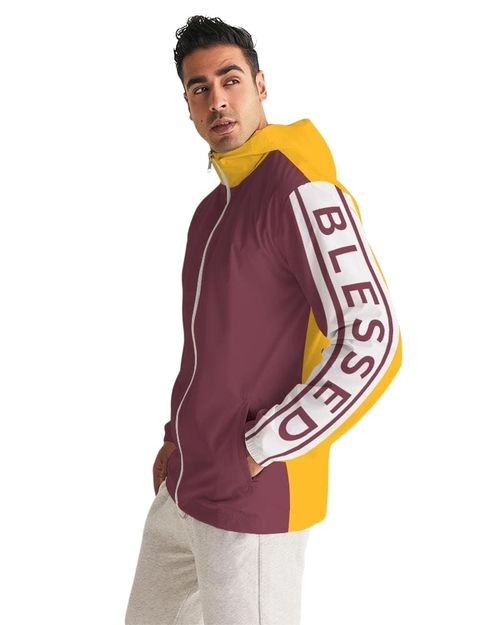 About The ArtBlessed Stripe Burgundy & Gold Product DetailsGear up for windy and rainy seasons in this classic Men's Windbreaker. Handmade with lightweight, water-resistant fabric, and full mesh lining that can layer easily over our Men's Tank or Graphic Tee.