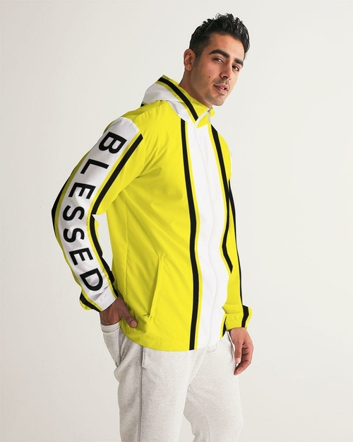 About The ArtBlessed Stripe Neon Yellow Product DetailsGear up for windy and rainy seasons in this classic Men's Windbreaker. Handmade with lightweight, water-resistant fabric, and full mesh lining that can layer easily over our Men's Tank or Graphic Tee.