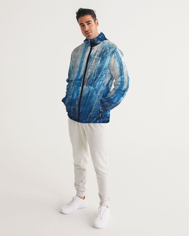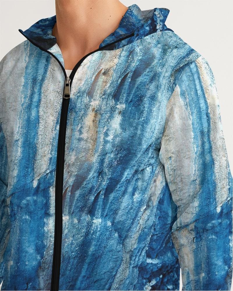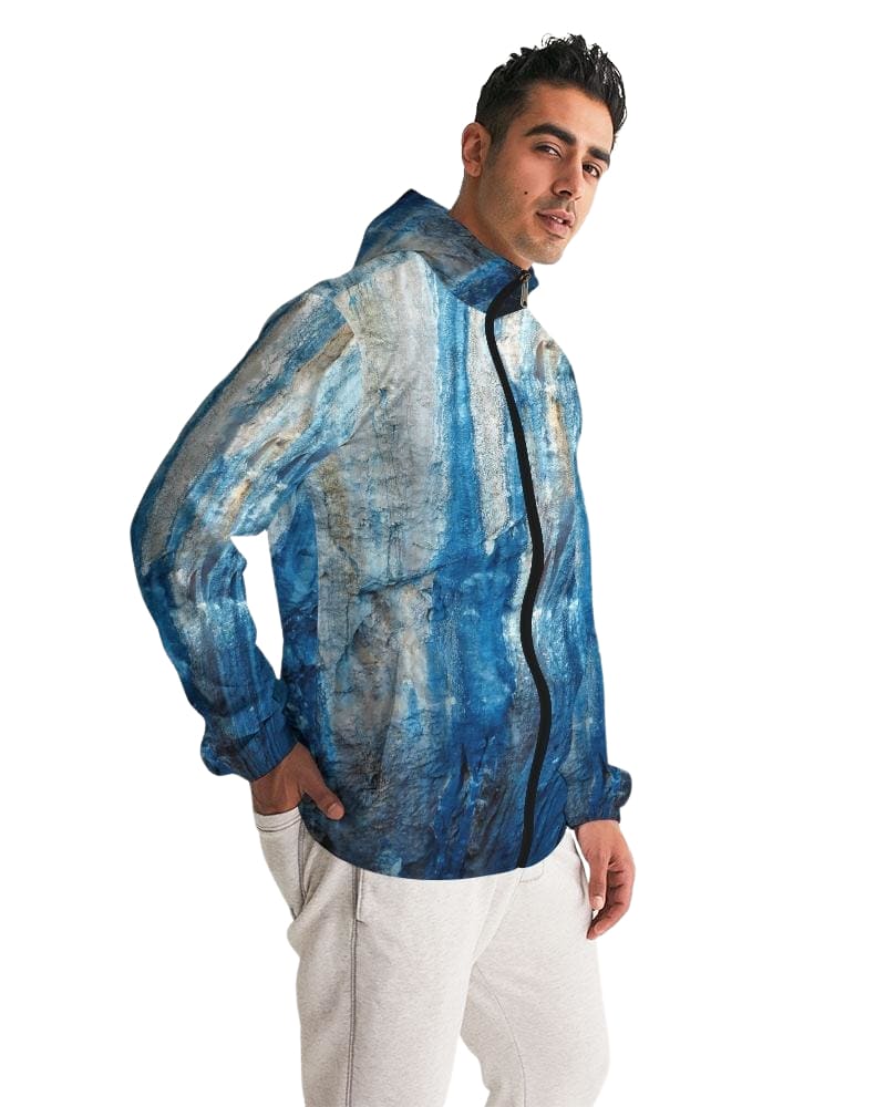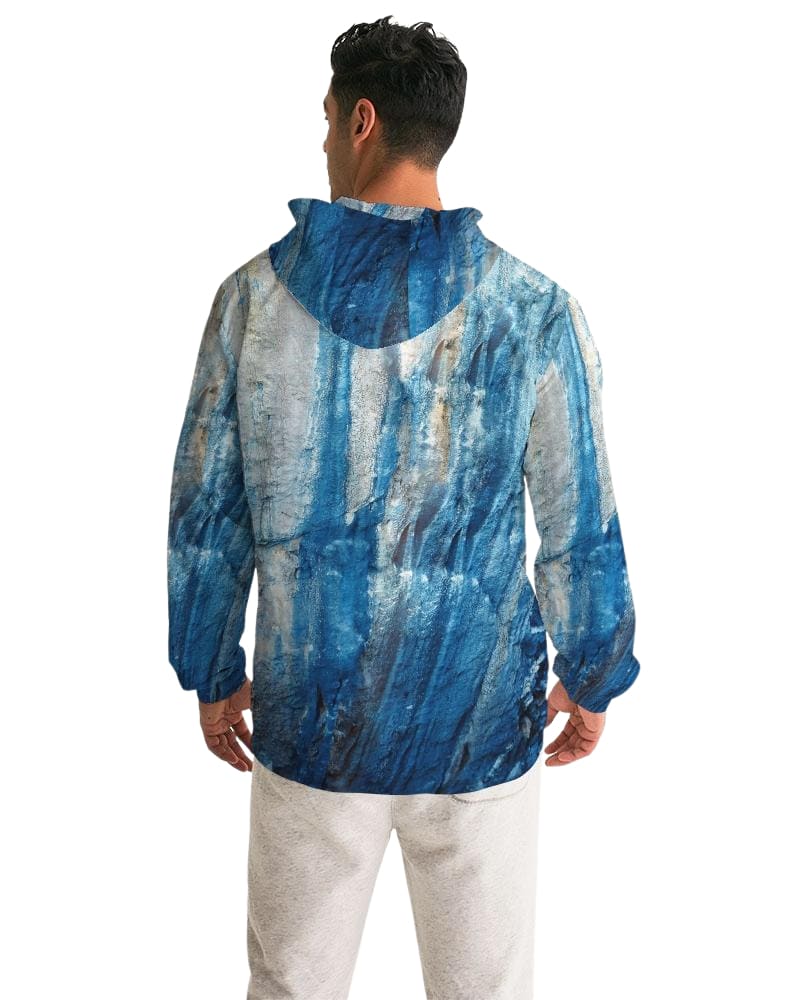 Men's Hooded Windbreaker in blue, showcasing its lightweight, water-resistant fabric and stylish design, perfect for casual and sports activities.