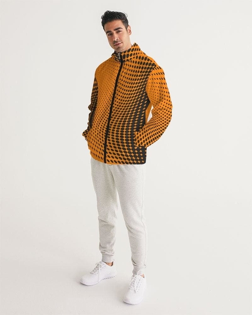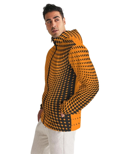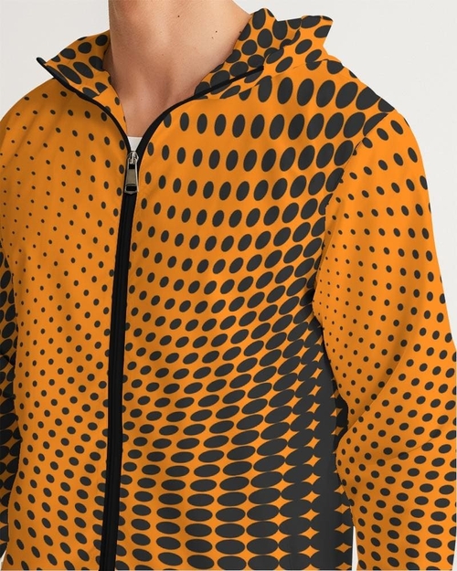 Introducing the Men's Hooded Windbreaker in a striking orange polka dot design, perfect for those who want to stay fashionable while braving the elements. This jacket is not just about looks; it is crafted from lightweight, water-resistant fabric that ensures you remain dry and comfortable during windy and rainy days. The full mesh lining allows for easy layering over your favorite Men's Tank or Graphic Tee, making it a versatile addition to your wardrobe.