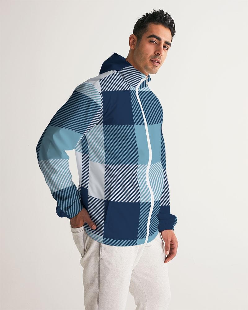 Dropship Mens Hooded Windbreaker - Tartan Plaid Blue Water Resistant Jacket