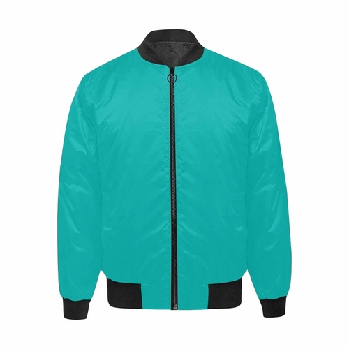Introducing our Men's Greenish Blue and Black Bomber Jacket, a perfect blend of style and comfort. Made from 100% polyester, this jacket features a quilted lining that ensures warmth and coziness during chilly days. The unique greenish blue and black color combination makes it a standout piece in any wardrobe, suitable for casual outings or relaxed gatherings.