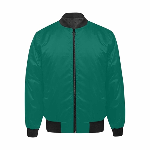 Introducing our Men's Teal Green and Black Bomber Jacket, a perfect blend of style and comfort. Made from 100% polyester, this jacket features a quilted lining that provides warmth and coziness, making it an ideal choice for chilly days. The vibrant teal green and black color combination ensures that you stand out while maintaining a classic bomber jacket look.