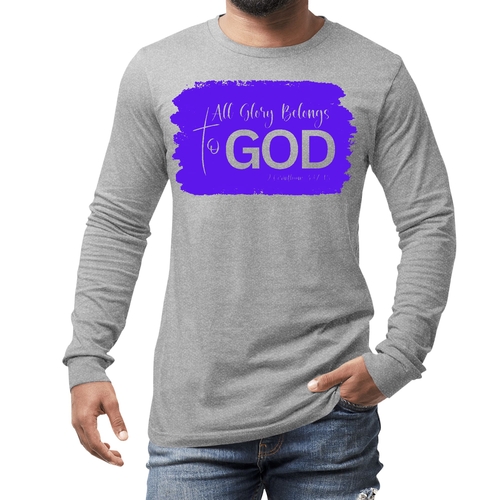 Introducing our Men's Long Sleeve Graphic T-shirt, featuring the inspiring message 'All Glory Belongs to God.' This stylish and comfortable t-shirt is perfect for anyone looking to express their faith while enjoying a versatile wardrobe staple. Made from high-quality, breathable cotton, this long sleeve tee is designed to keep you comfortable in any season, whether you're layering it for warmth in the winter or wearing it alone in the spring and fall.