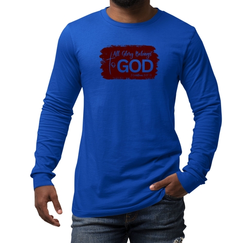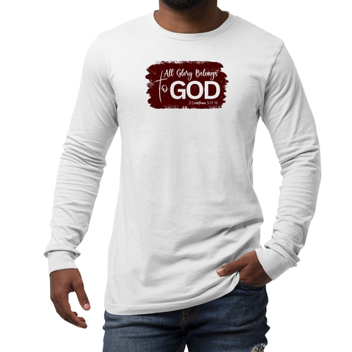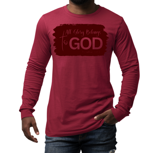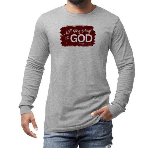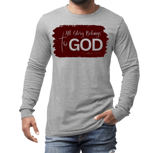Introducing our Men's Long Sleeve Graphic T-shirt, a stylish and meaningful addition to your wardrobe. This t-shirt features the inspiring phrase 'All Glory Belongs to God' in a captivating graphic design, making it a perfect choice for those who want to express their faith through fashion. Crafted from high-quality, breathable cotton, this long sleeve tee is designed for comfort and versatility, suitable for any season.