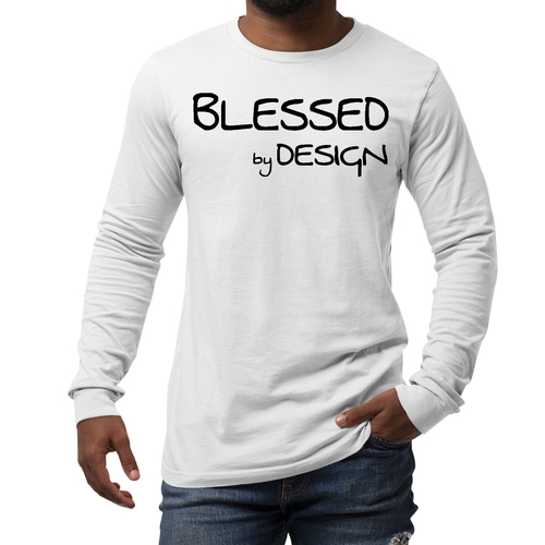 Introducing the Mens Long Sleeve Graphic T-shirt Blessed by Design, a perfect blend of comfort and inspiration. This stylish black tee features an uplifting affirmation that resonates with positivity and motivation. Made from high-quality preshrunk cotton, this t-shirt ensures that you not only look good but feel great too. The fabric retains its softness and size even after multiple washes, making it a reliable choice for your everyday wardrobe.