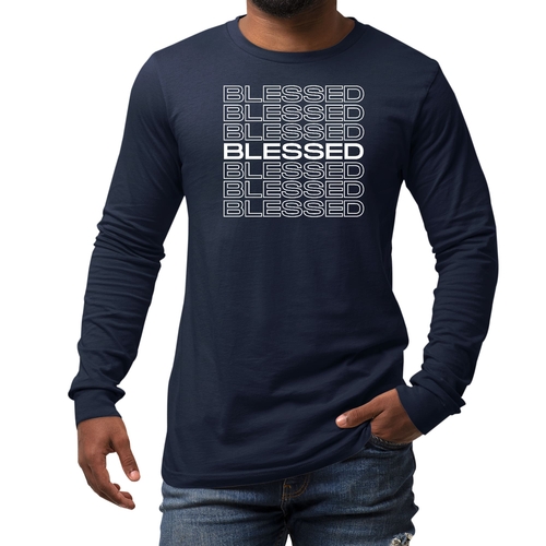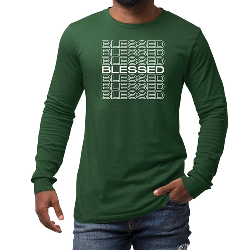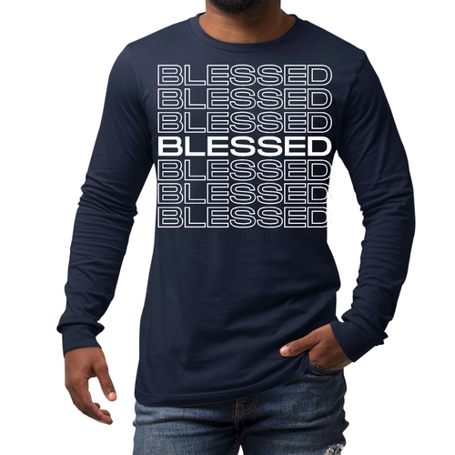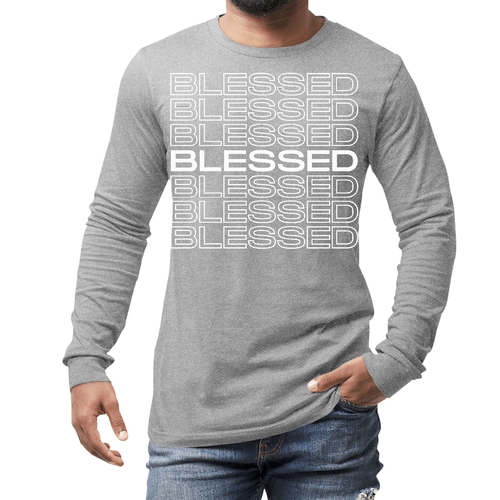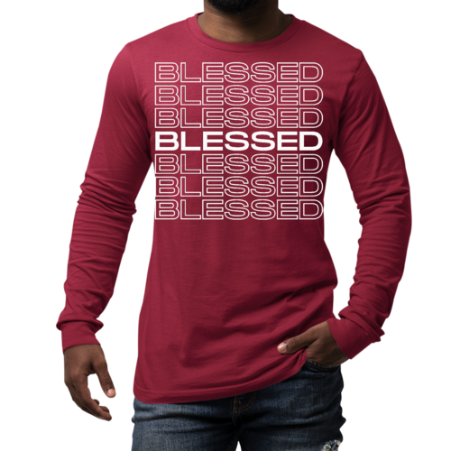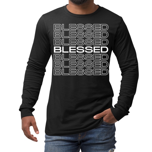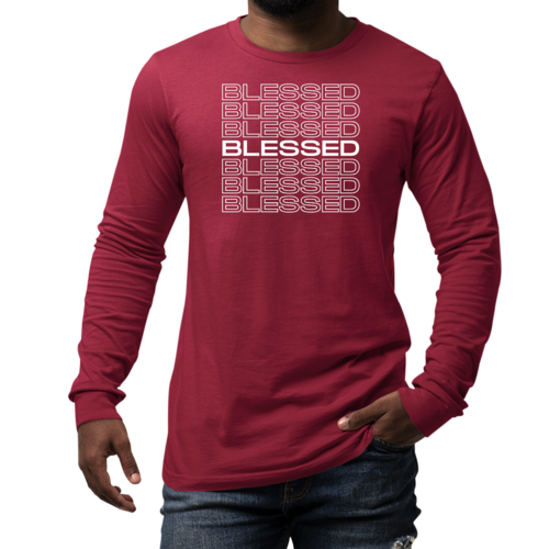 In summary, our Men's Long Sleeve Graphic T-shirt with Blessed Stacked Print is a must-have for anyone looking to combine comfort with a stylish statement. With its durable material, classic fit, and easy care instructions, this t-shirt is designed to be a staple in your closet for years to come.