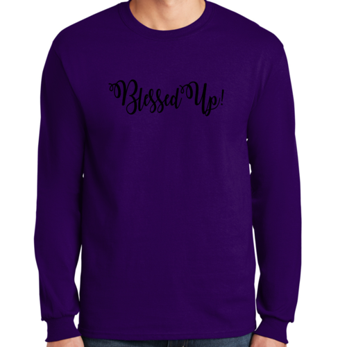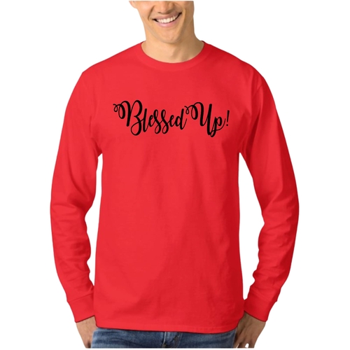 Choosing our Blessed Up Men's Long Sleeve Graphic T-shirt means investing in quality, comfort, and style. Printed in the USA, this shirt not only supports local businesses but also ensures that you receive a product that meets high standards of craftsmanship. The thoughtful design and quality materials make this tee a must-have for anyone looking to express their faith and positivity through fashion.