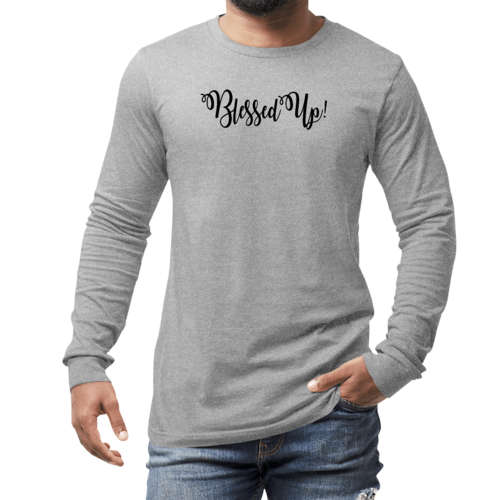 In summary, our Men's Long Sleeve Graphic T-shirt featuring the Blessed Up quote is more than just a piece of clothing; it's a way to inspire yourself and others. With its comfortable fit, durable fabric, and motivational message, this tee is sure to become a favorite in your wardrobe.