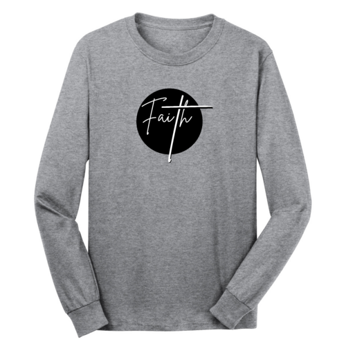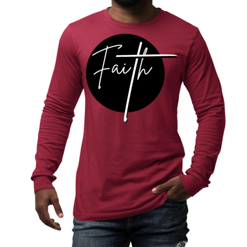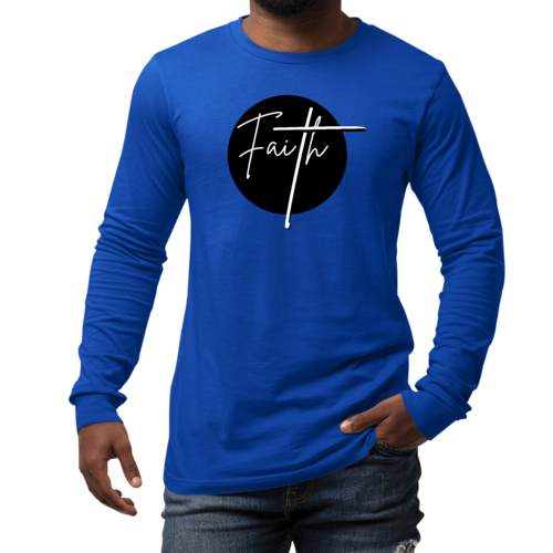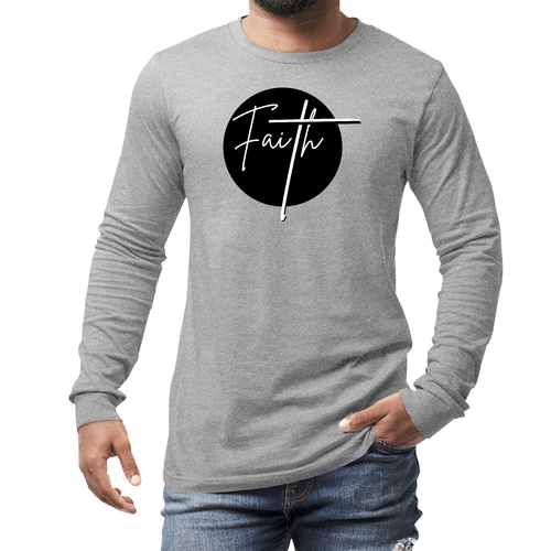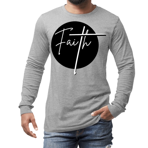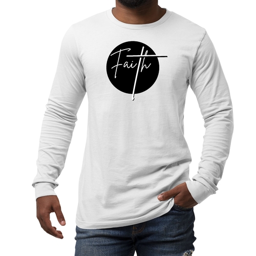 Introducing our Men's Long Sleeve Graphic T-shirt featuring a striking Faith print, perfect for those who want to express their beliefs in style. This black and white graphic tee is not only a fashion statement but also a comfortable choice for everyday wear. Made from high-quality preshrunk cotton, this t-shirt retains its softness and size even after multiple washes, ensuring that it remains a staple in your wardrobe for years to come.