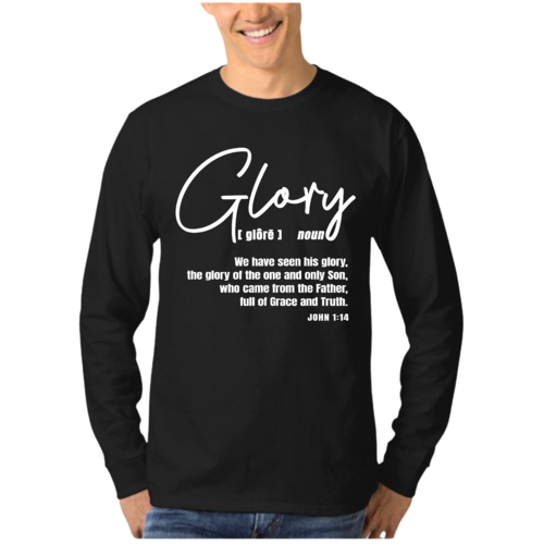 In summary, the Men's Long Sleeve Graphic T-shirt, Glory, is more than just a T-shirt; it’s a statement of faith and comfort. With its high-quality materials, classic fit, and inspirational design, this tee is a must-have for anyone looking to express their beliefs while enjoying the softness of preshrunk cotton. Add this versatile piece to your collection today and wear your inspiration proudly!