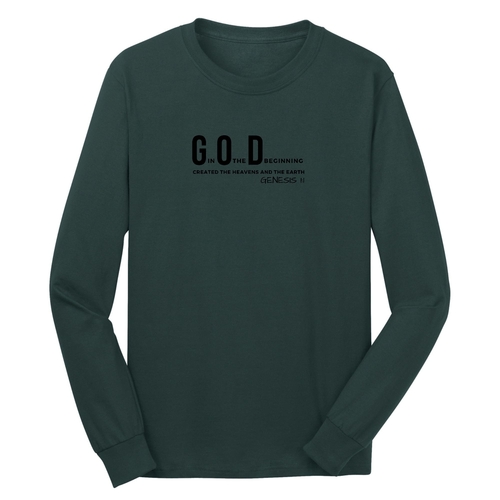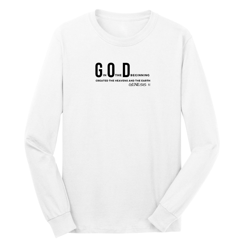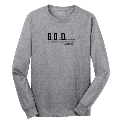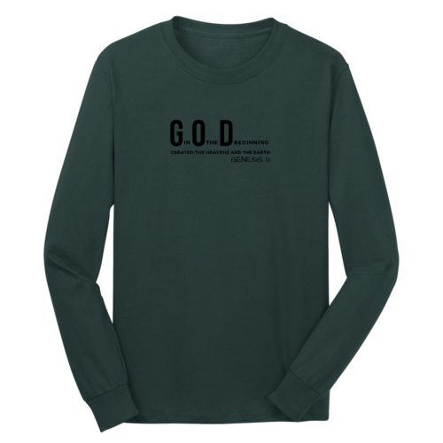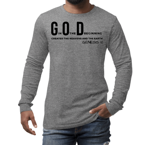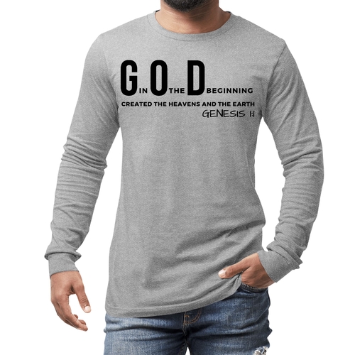 Introducing our Men's Long Sleeve Graphic T-shirt featuring the inspiring print 'God in the Beginning Created The Heavens And The Earth'. This stylish black tee is not only a fashion statement but also a testament to your faith. Made from high-quality preshrunk cotton, this shirt ensures that you enjoy lasting comfort and a perfect fit even after multiple washes.