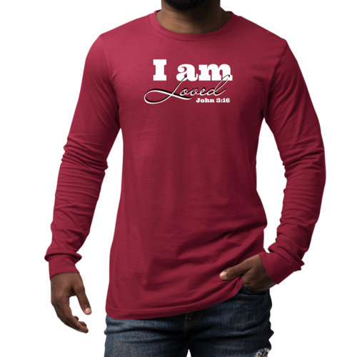 Introducing our Men's Long Sleeve Graphic T-shirt, featuring the inspiring 'I am Loved' illustration based on John 3:16. This unique graphic tee is designed for both men and women, making it a versatile addition to any wardrobe. Crafted from soft, preshrunk cotton, this shirt ensures comfort and durability, allowing you to wear it confidently for years to come.