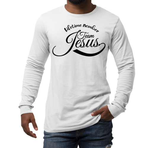 In summary, the Men's Long Sleeve Graphic T-shirt - Lifetime Member Team Jesus is more than just a piece of clothing; it's a representation of your beliefs and a testament to your style. With its comfortable fit, quality material, and striking graphic design, this t-shirt is a must-have for anyone looking to express their faith in a fashionable way. Don't miss out on the opportunity to add this versatile and stylish t-shirt to your collection today!