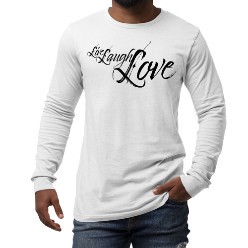 Introducing our Men's Long Sleeve Graphic T-shirt featuring the inspiring 'Live Laugh Love' black illustration. This t-shirt is not just a piece of clothing; it's a statement of positivity and style. Crafted from high-quality, breathable cotton, this long sleeve tee is designed to provide comfort and versatility throughout the year. Whether you're layering it for the chilly fall, wearing it as a standalone piece in spring, or cozying up in winter, this t-shirt is your go-to choice.
