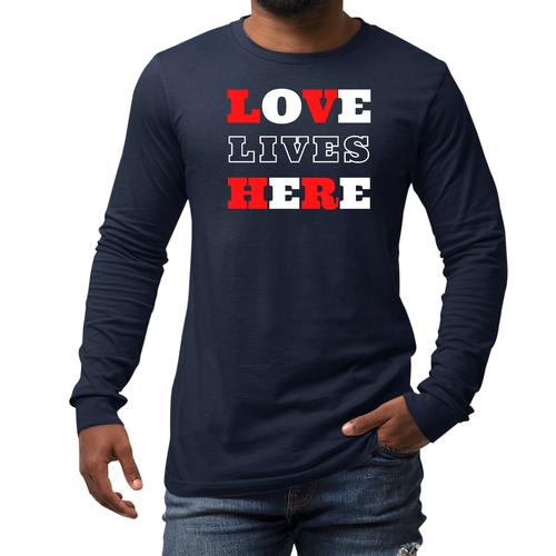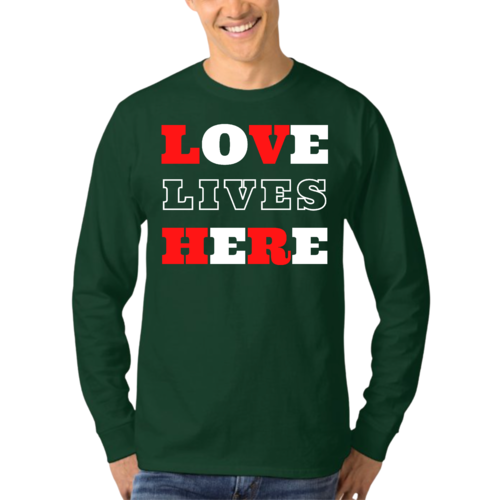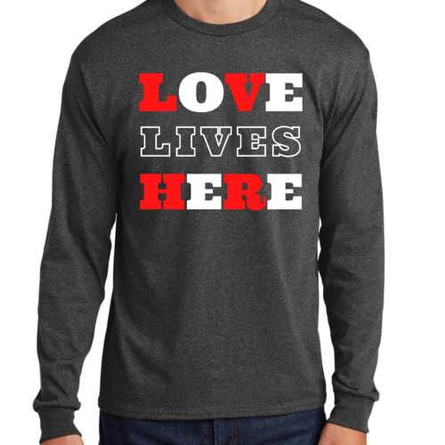 Choosing the Men's Long Sleeve Graphic T-shirt, Love Lives Here Christian means choosing quality, comfort, and a message that resonates. It's more than just a piece of clothing; it's a way to express your beliefs and values while enjoying the softness and durability of a well-made tee. Don't miss out on the opportunity to add this essential item to your collection.