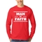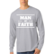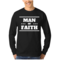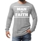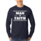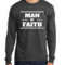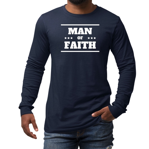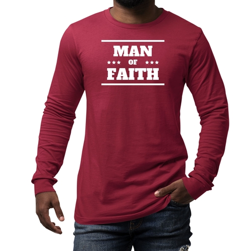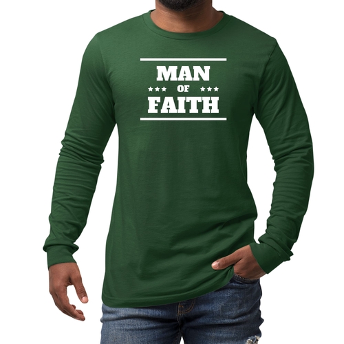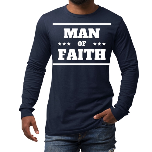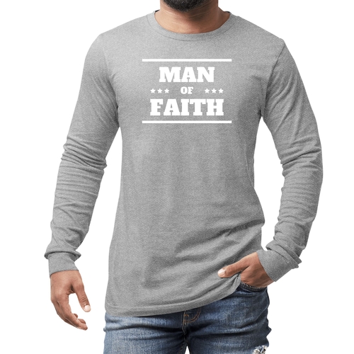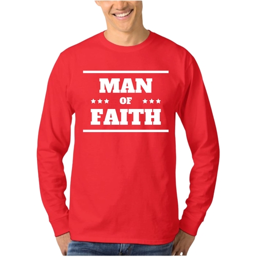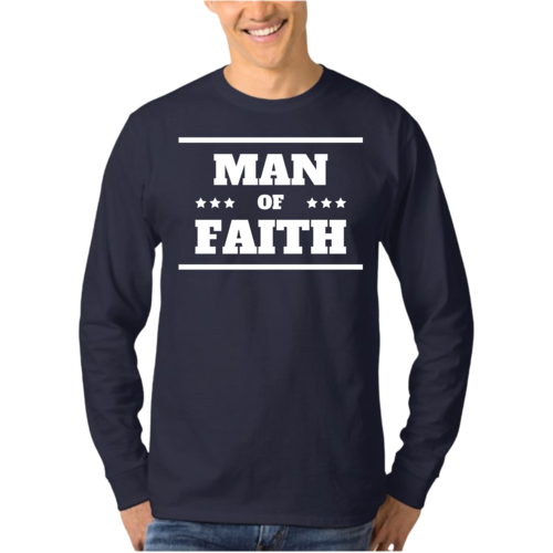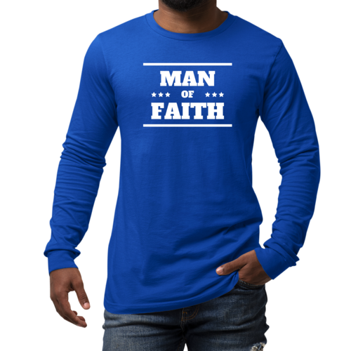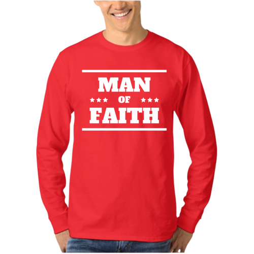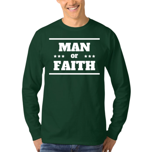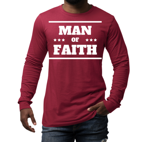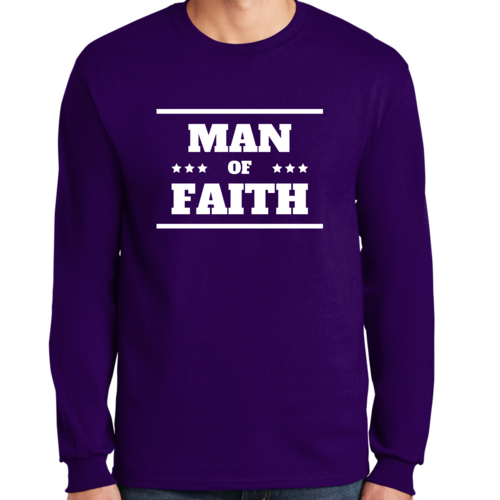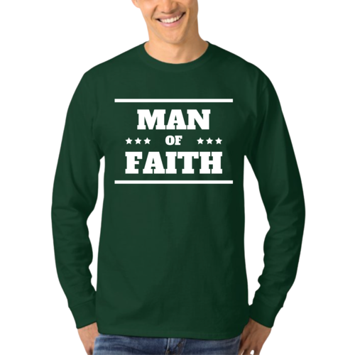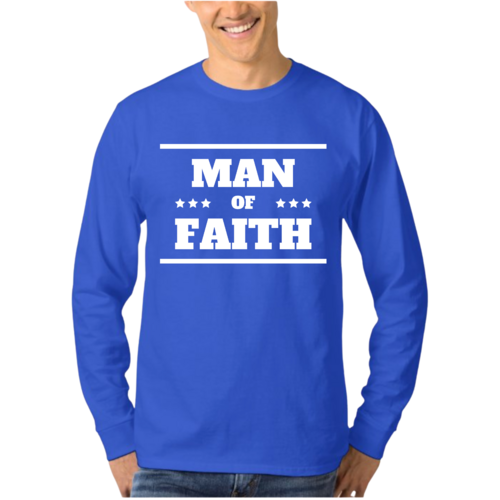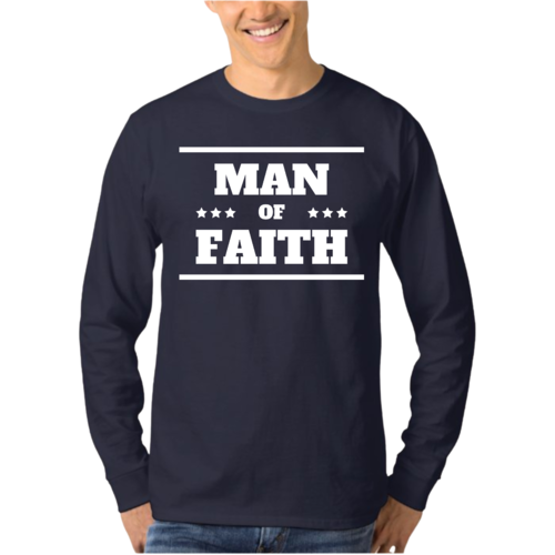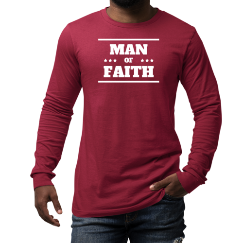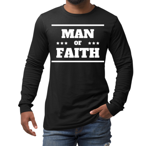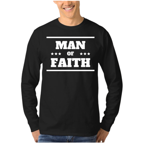 In summary, the Men's Long Sleeve Graphic T-shirt, Man of Faith, is a must-have for anyone looking to combine comfort, style, and a meaningful message. With its high-quality cotton material, unisex fit, wide range of sizes, and durable construction, this tee is designed to meet your everyday needs. Make a statement with this stylish graphic tee and showcase your faith wherever you go.
