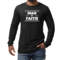 The standout feature of the Men's Long Sleeve Graphic T-shirt is its stylish graphic design. The 'Man of Faith' print serves as a powerful statement, allowing you to express your beliefs and values through your clothing. This tee is not just a piece of clothing; it's a way to showcase your faith and inspire others around you.