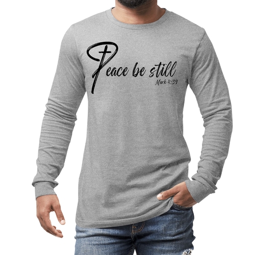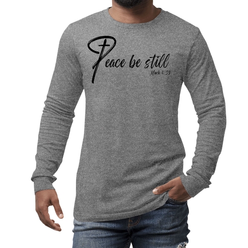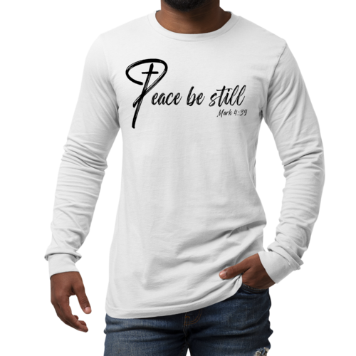 Introducing our Men's Long Sleeve Graphic T-shirt featuring the inspiring message 'Peace Be Still'. This stylish and versatile t-shirt is perfect for any season, making it an essential addition to your wardrobe. Crafted from soft, breathable cotton, this long sleeve tee combines comfort and fashion effortlessly, allowing you to express your unique style while staying cozy.