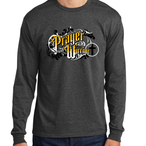In summary, our Men's Long Sleeve Graphic T-shirt featuring a Prayer Warrior design in a Victorian style is a must-have for anyone looking to combine comfort, durability, and style. With its soft cotton material, unisex fit, and meaningful graphic, this tee is perfect for expressing your faith while staying fashionable.
