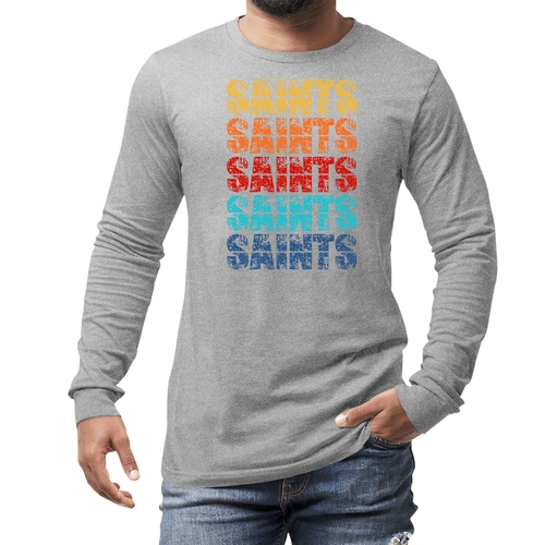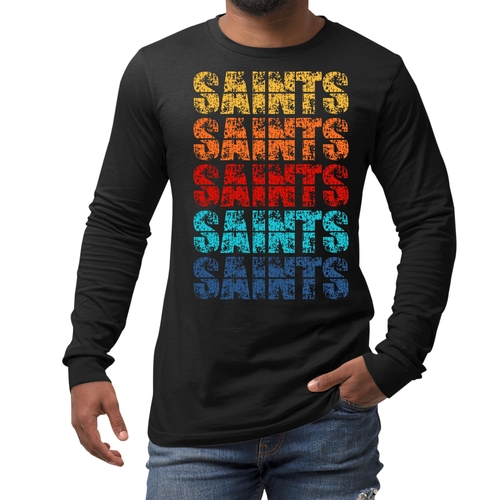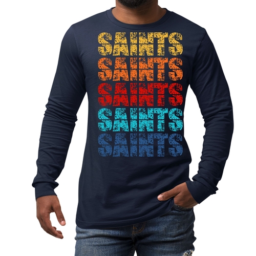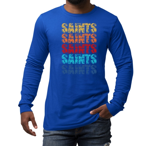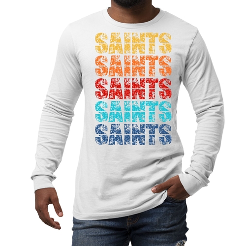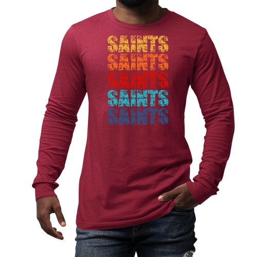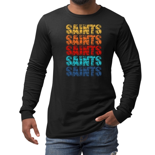 Introducing our Men's Long Sleeve Graphic T-shirt, a perfect blend of style and comfort. This t-shirt features a stunning Saints Colorful Art Illustration that is sure to turn heads. Made from high-quality, breathable cotton, this long sleeve tee is designed to be your go-to choice for any season. Whether you're layering it for a chilly fall day or wearing it solo in the spring, this shirt offers versatility and a fashionable edge.