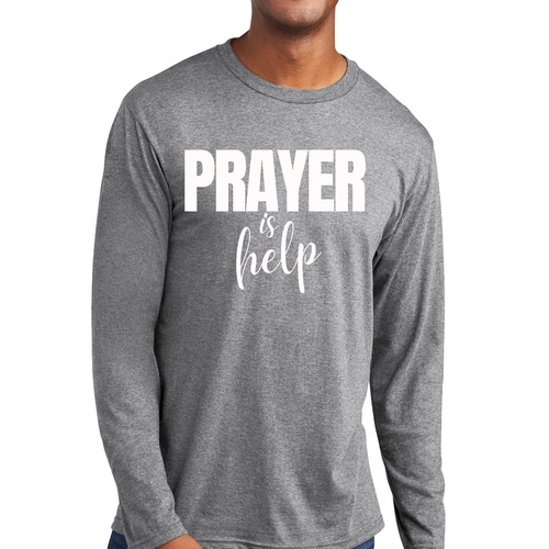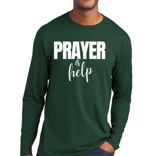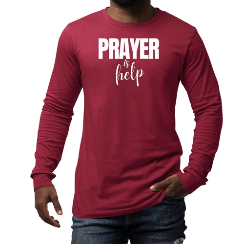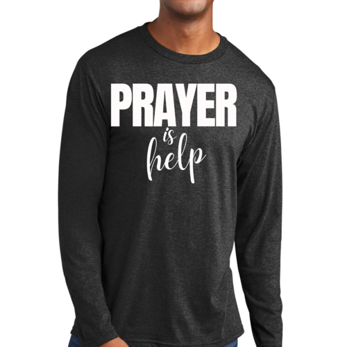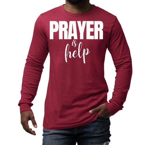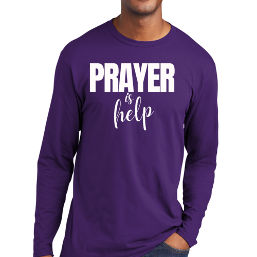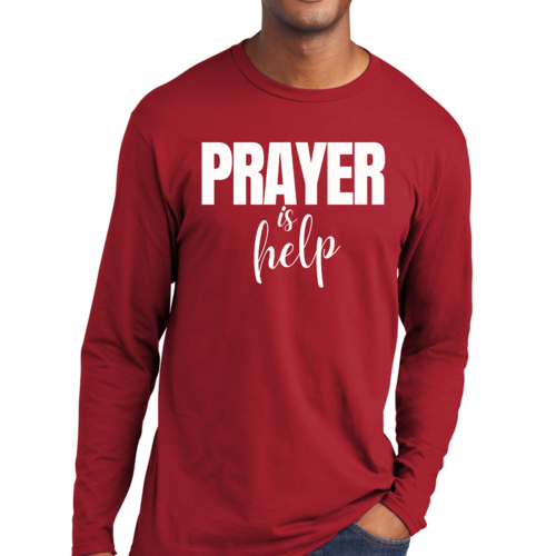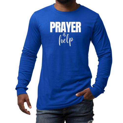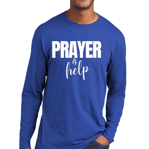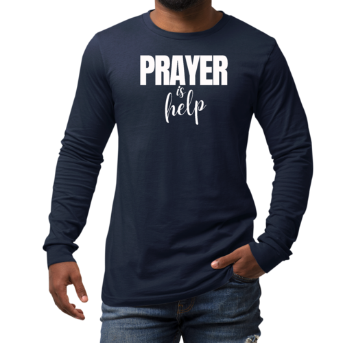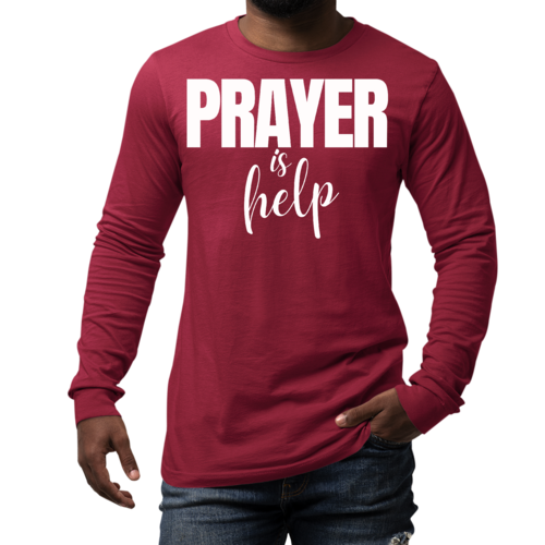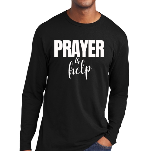 Introducing the Men's Long Sleeve Graphic T-shirt from Say It Soul, featuring the powerful and inspirational quote, 'Prayer is Help'. This t-shirt is not just a piece of clothing; it’s a statement of faith and encouragement. Crafted from soft, preshrunk cotton, this tee ensures that you stay comfortable while spreading a positive message. Whether you're lounging at home, running errands, or attending a casual gathering, this shirt is perfect for any occasion.