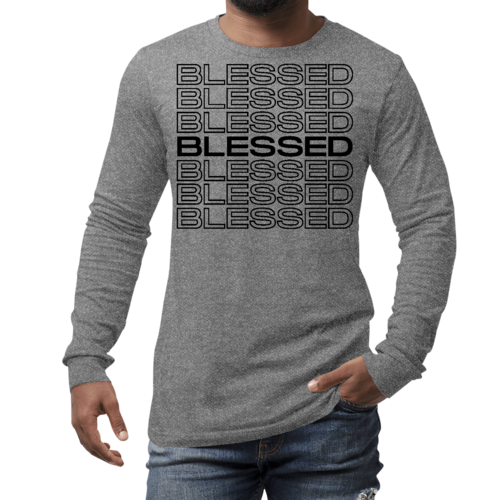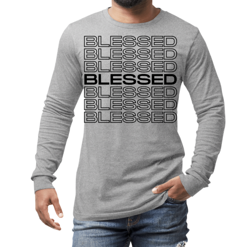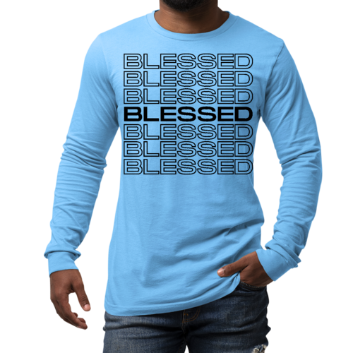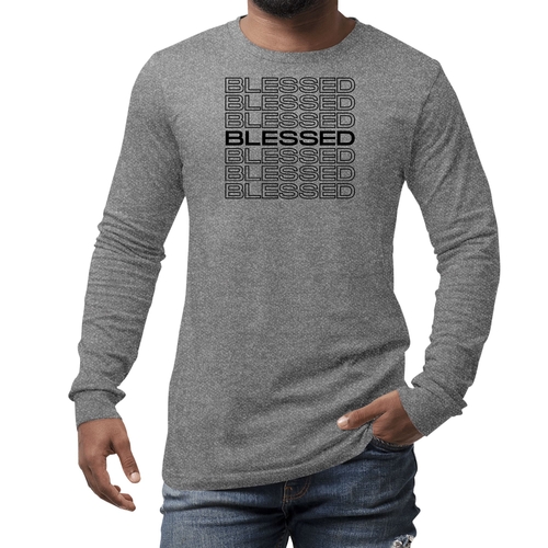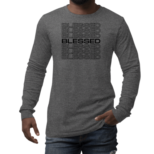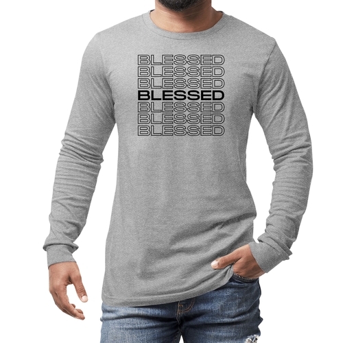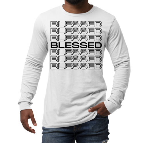 Introducing our Men's Long Sleeve Graphic T-shirt featuring a Stacked Blessed Print, designed for those who appreciate both style and comfort. This inspirational affirmation tee is perfect for casual outings, lounging at home, or even as a thoughtful gift for someone special. Made from high-quality preshrunk cotton, this shirt ensures that you not only look good but feel great too.